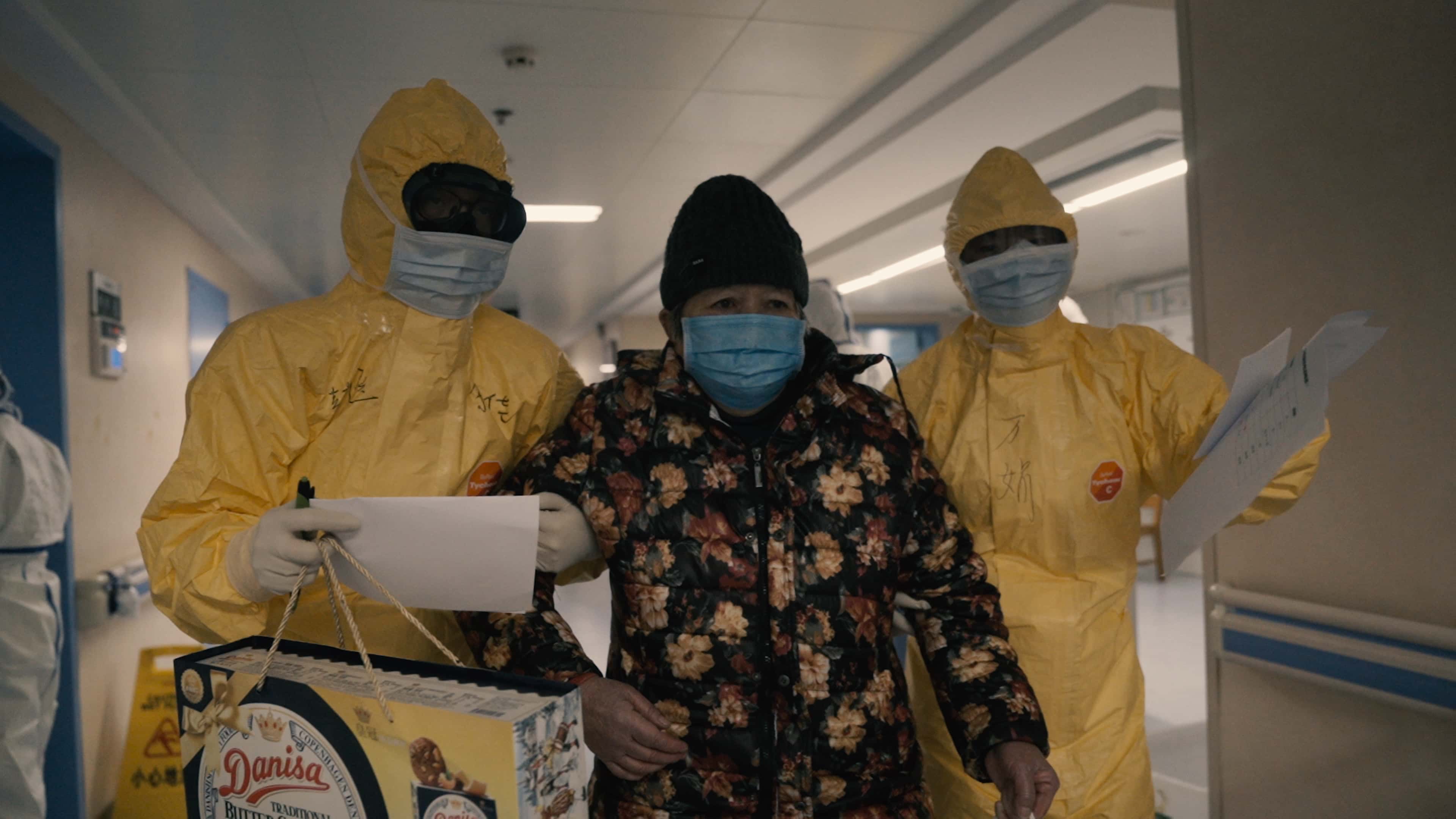 It is hard to find comic relief in a documentary about dark days, but the "naughty grandpa" often provides that — that is, until you learn that he has dementia. Grandpa keeps wandering out of his room, without his mask, and the nurses are forced to deal with it every single time. When the nurses call his son, the latter lightly mocks Grandpa for his attitude despite claiming to be a communist party member, to which he responds that he will always be a party member, even in death. However, he is just desperate to go home to his family and see his grandchildren again. Even after he recovers, his son is reluctant to bring him home worried that he may still carry the infection. By the end, Grandpa says he no longer wants to go home saying his family picks on him, but when the day finally arrives, he says he is most excited about holding his littlest great-grandchild.