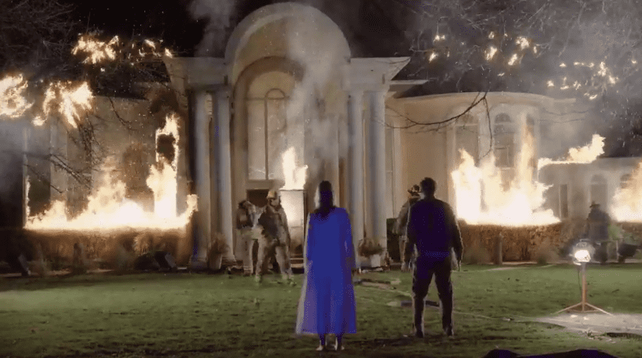 By the time the fire department arrives, the house is nearly burned to the ground with Debora watching the scene with a stone-cold face.