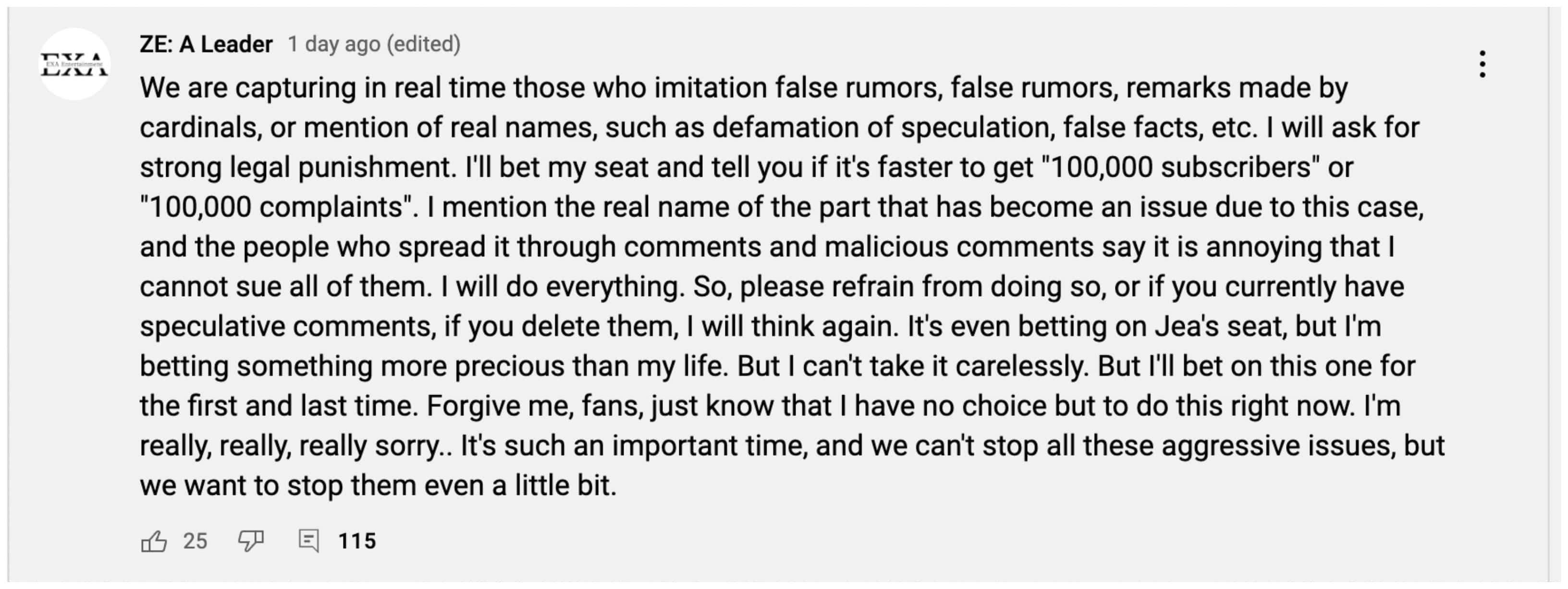 Lmao I would love to see this alleged “apology” of which you speak. He hasn’t even ADMITTED his wrongdoings. He’s sitting over her preaching this “the whole world is against me!!! Boohoo!!” narrative. And yes, he did use ZE:A, multiple times. You’re just too blind to see it