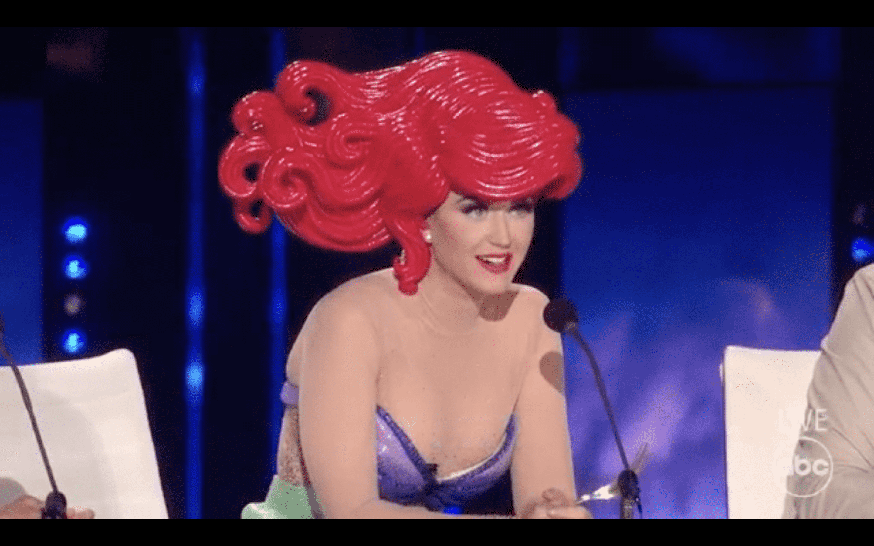 From wardrobe malfunctions to chair falls, 'American Idol' judge Katy Perry is making sure that the show's audience remains entertained even during the tensest moments of ABC's singing competition show. As the competition amongst the contestants is reaching a cut-throat phase during the Top 10 round, Katy managed to provide some much-needed comic relief by dressing up as Ariel to honor the Disney Week on the ABC show.