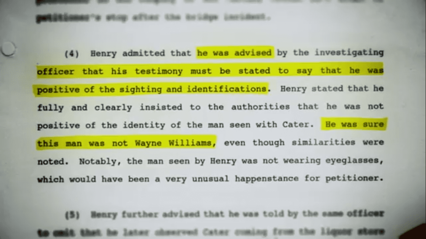 Bobby Toland was discovered to be a member of the Ku Klux Klan who gave a false statement under a fake identity. It was also revealed that the initial forensic reports from the crime scene discovered that the dog hairs recovered from the bodies were white and possibly belonged to an Alaskan Malamute or a Siberian Husky. Williams' dog was a brown German Shepherd, but the reports had been changed to display 'light brown' in place of 'white' after Williams emerged as a suspect. The FBI's assumption without record and the mathematical possibilities couldn't be justified, yet they were presented in front of the jury as hard evidence.