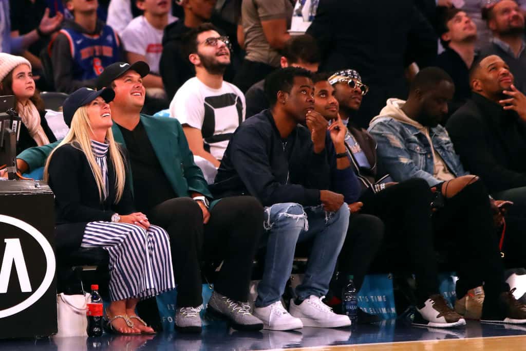 As the New York Knicks went against the Cleveland Cavaliers at the Madison Square Garden, Aziz Ansari was spotted sitting courtside and enjoying the show.