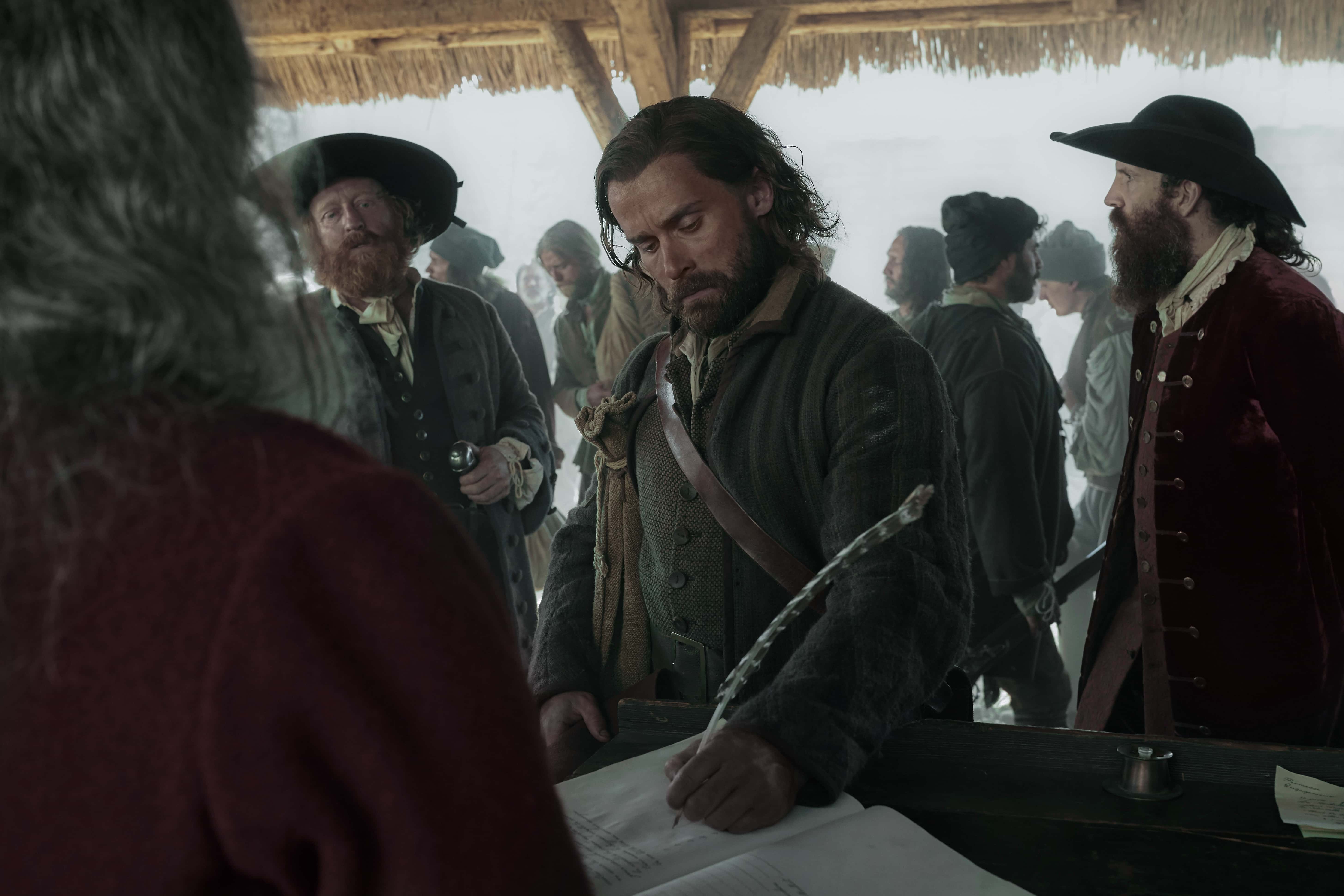 Elsewhere, two young women arrive on the same boat as Rene and Duquet. The 'Filles Du Roi' (or 'Daughters of the King') are sent from France to be matched with husbands, start families and help the colony prosper in this land. Melissande (Tallulah Haddon) and Delphine (Lily Sullivan) are to choose their husbands but their criteria for a man is different yet similar. On the other side of this town, Hamish Goames (Aneurin Barnard) arrives with Yvon (Zahn McClarnon) to investigate the disappearance of a fellow agent from the Hudson's Bay Company. It is evident early on that Hamish has more to conceal than he has to show for himself, which puts him in a suspicious situation.
