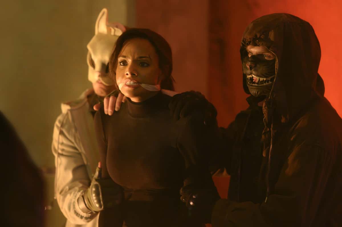 The city wants to move on from Batman and to do so Jacob (Dougray Scott) does his part as well. He tells the elite residents of the city that his security company, "Crows, represent order. Security. Safety." The one sure shot way to undermine the Crows' reputation is by pulling off something major at a Crow secured event and Alice, with the help of her masked associates, manage to kidnap Sophie Moore, a Crow agent.