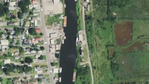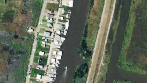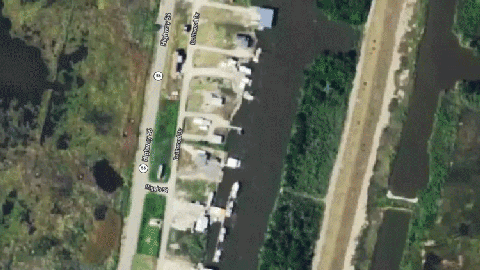 In the first two image comparisons, one can see the storm-surge flooding Jean Lafitte, which is just over a 20-mile drive south of New Orleans.