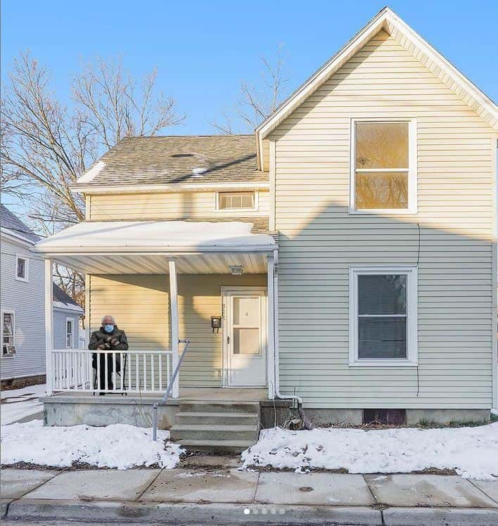 "[The day after the Inauguration] I was driving down the road and I decided to call my marketing director Aubrey Kuipers and I said, 'Aubrey, we're doing this; it's perfect.'" She asked Kuipers to digitally add Sanders into a few of the listing photos of the home located at 321/325 Donald Place SE. Soon after, two photos in the listing for the home on Donald Place had Sanders sitting on the front porch while another picture showed him in the kitchen.