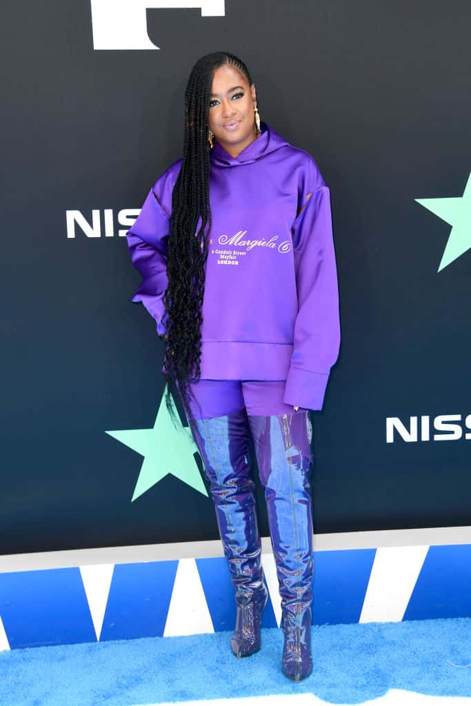 Rapper Rapsody is the perfect mix of glamor and comfort at the BET red carpet, and we cannot help but marvel at how she has managed to be authentic to who she is with her fashion over the years. Her face is beat and her cornrows are longer than the night. Complete with a pair of hoop earrings and electric purple boots, this look will inspire any self-declared non-fashionista to glam up for one night of fun without compromising on their individuality.