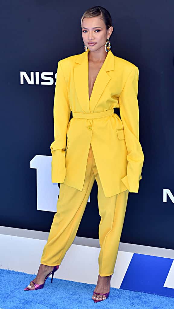 Having coupled up with Victor Cruz for the red carpet, Karuche Tran looked every bit the boss b***h that she is in a yellow power suit. Like Ciara, she seems to have embraced the neon for the night and complemented her yellow outfit with a pair of purple heels.