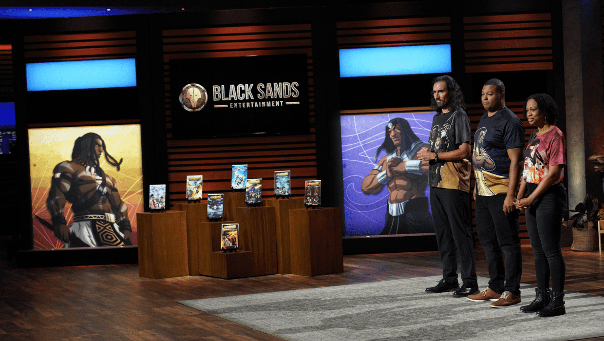 Black Sands Entertainment founded by husband and wife duo Manuel Godoy and Geiszel Godoy alongside Teunis De Raat, stepped into the tank seeking a whopping $500,000 for a 5% stake in their brand. The trio explained their brand's mission of inclusivity and to educate people on Black history and culture through their work. After tasting success in the publishing world, the brand was eyeing the animation and entertainment industry, so they entered the tank seeking for capital to work on their big plans. The pitch instantly grabbed the attention of guest Shark Kevin Hart and also Mark Cuban.