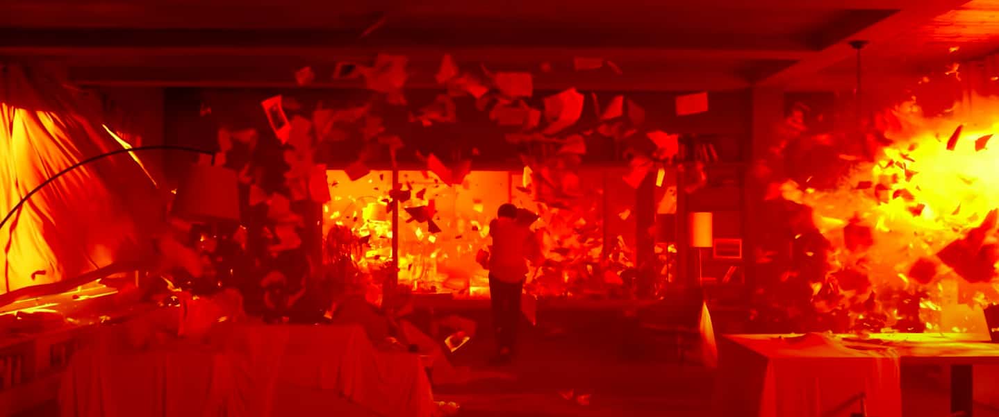 In the Bangtan Universe storyline, Jin is the time traveler who tries to constantly switch between different timelines in an effort to save the members from their evident endings. Like in 'Fake Love', Jin here faces a dead end too, stuck in a frame while the world explodes, reflecting one more failed attempt.