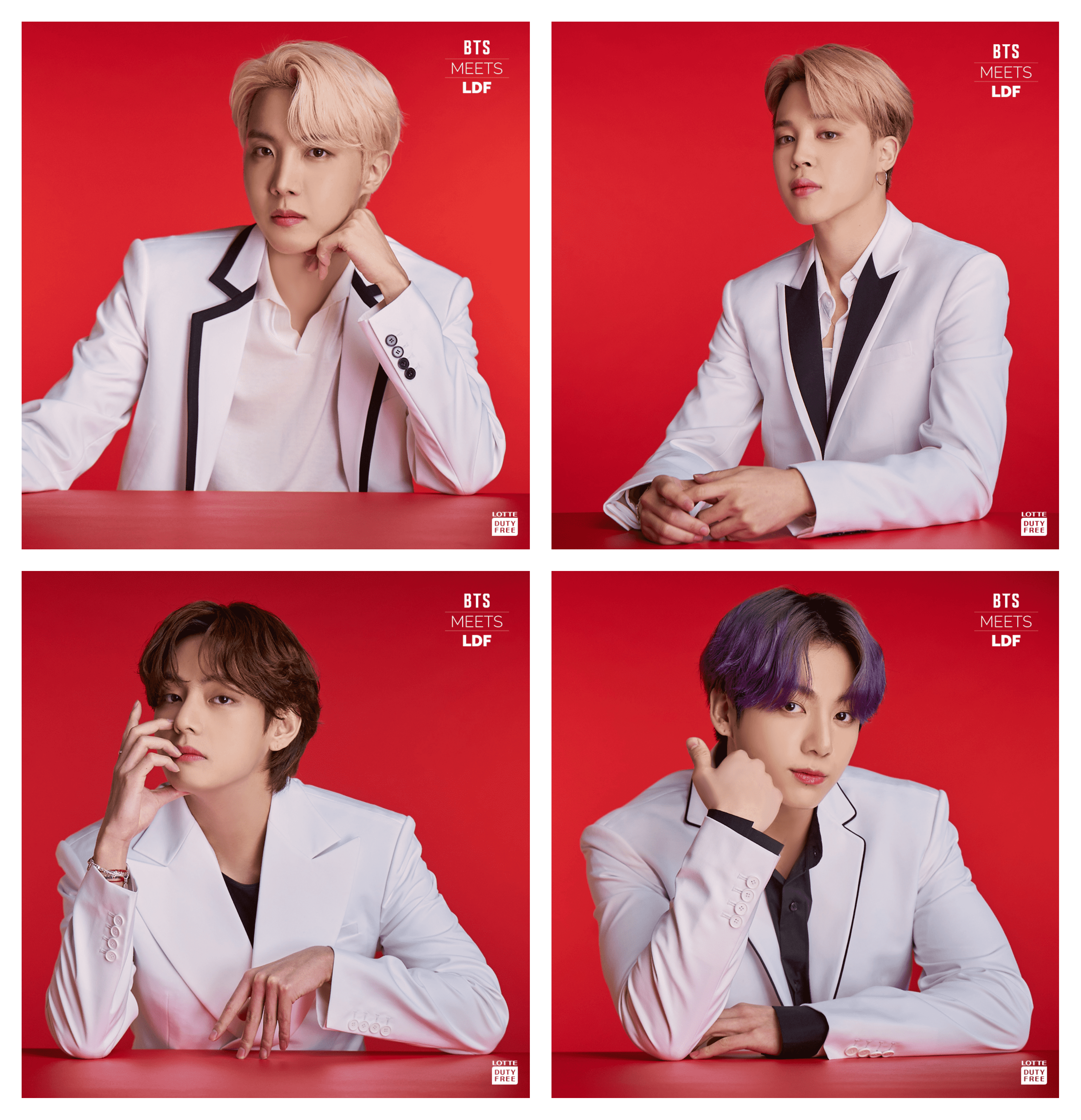 Lotte posted on their social media accounts individual photos of BTS members from the photoshoot on August 11. Their post was captioned, “The combination of the attractive ‘RED’ + ‘BTS’ in white suit? Like cures like!” Lotte claims that these photos are here to heat up the hot summer. They also said that once their tweet hits 5,000 likes, they would release smartphone background versions of each photo for both BTS and TXT members.