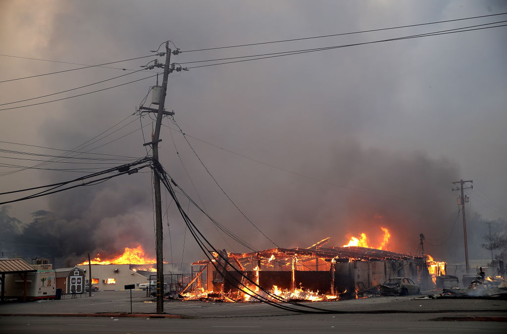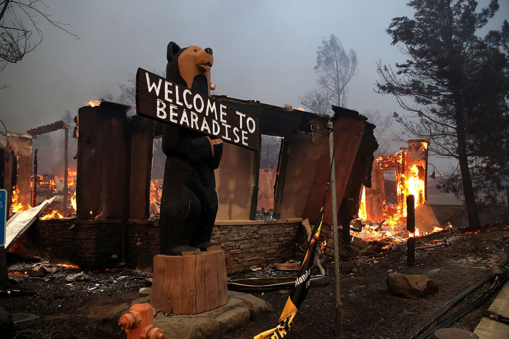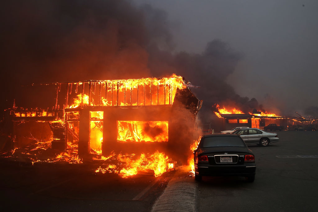 A business burns as the Camp Fire moves through the area on November 8, 2018 in Paradise, California. The Chico Fire Department said: “Firefighters continue to actively engage the fire in order to protect life and property.” (Getty Images)