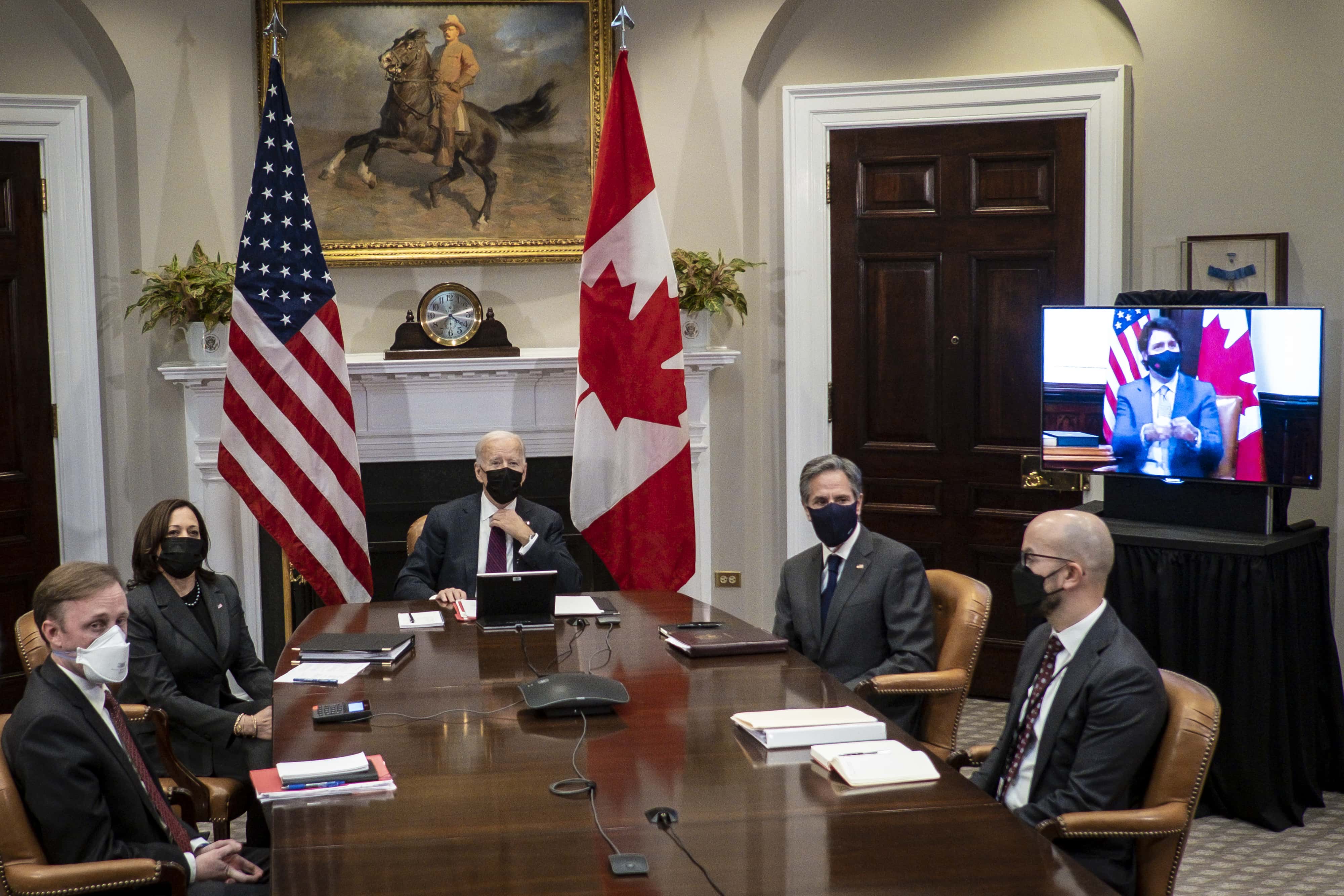 Unlike other times, because of the Covid-19 pandemic, the politicians met virtually instead of meeting in the Oval Office, where cameras would have caught them seated next to each other. In the White House’s Roosevelt Room, Biden was joined by Vice President Kamala Harris, Secretary of State Antony J. Blinken, and the national security adviser, Jake Sullivan. Greeting the new president, Trudeau said, “It’s so good to see you, Joe. And it’s such a great opportunity for us to — to sit down and talk not just about this extraordinary friendship between our two countries, but all the work we have to do together to get through COVID, but also to keep making sure we’re — we’re pulling our weight around the world and making the world a better and safer place for everyone — not just with this pandemic, but with everything else as well.”