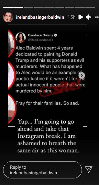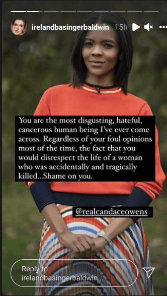 The tweets did not sit well with many Baldwin fans who lashed back at her for trying to gain political leverage from the accidental death of Halyna Hutchins. Soon afterward, Ireland Baldwin took to social media to slam Candace Owens. In her Instagram story, Ireland wrote, "You are the most disgusting, hateful, cancerous human being I've ever come across."