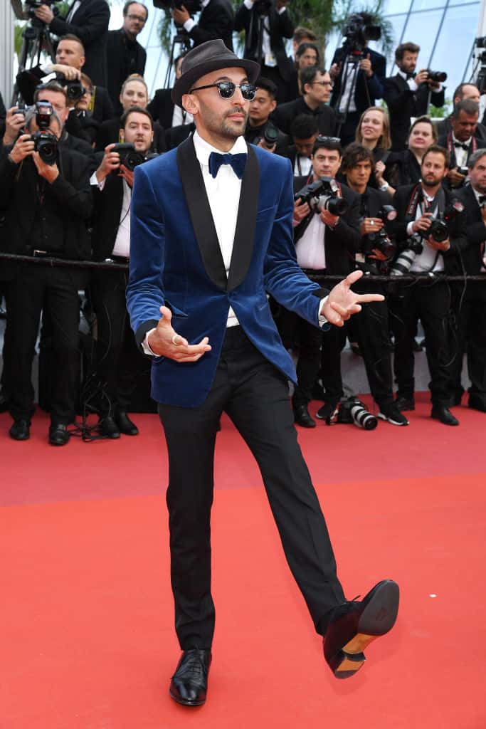 The artist Jean Rene opted for a classy look with a blue velvet blazer coupled with black trousers and a matching blue bow tie. JR spiced up his outfit with a black hat and a cool pair of black shades at the 'Les Miserables' premiere.