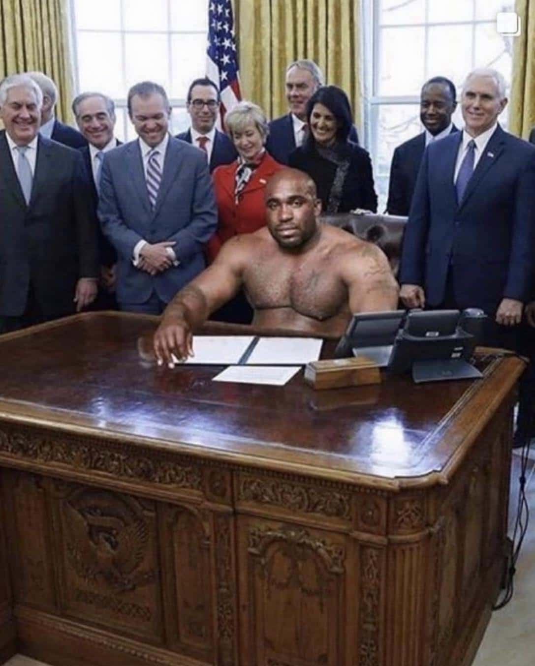 If you carefully see the original image, you may catch a framed portrait of the late Kentucky Senator Henry Clay. In the doctored image, the portrait has been replaced by the NSFW meme that includes a man with a colossal penis. McCreary is pictured in the same photo wearing a blue surgical mask.