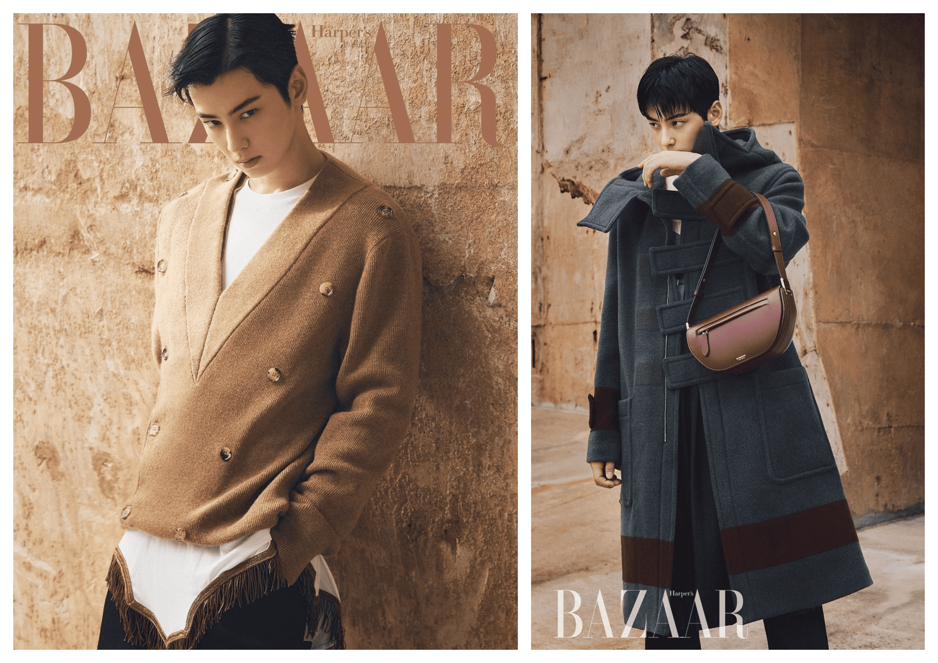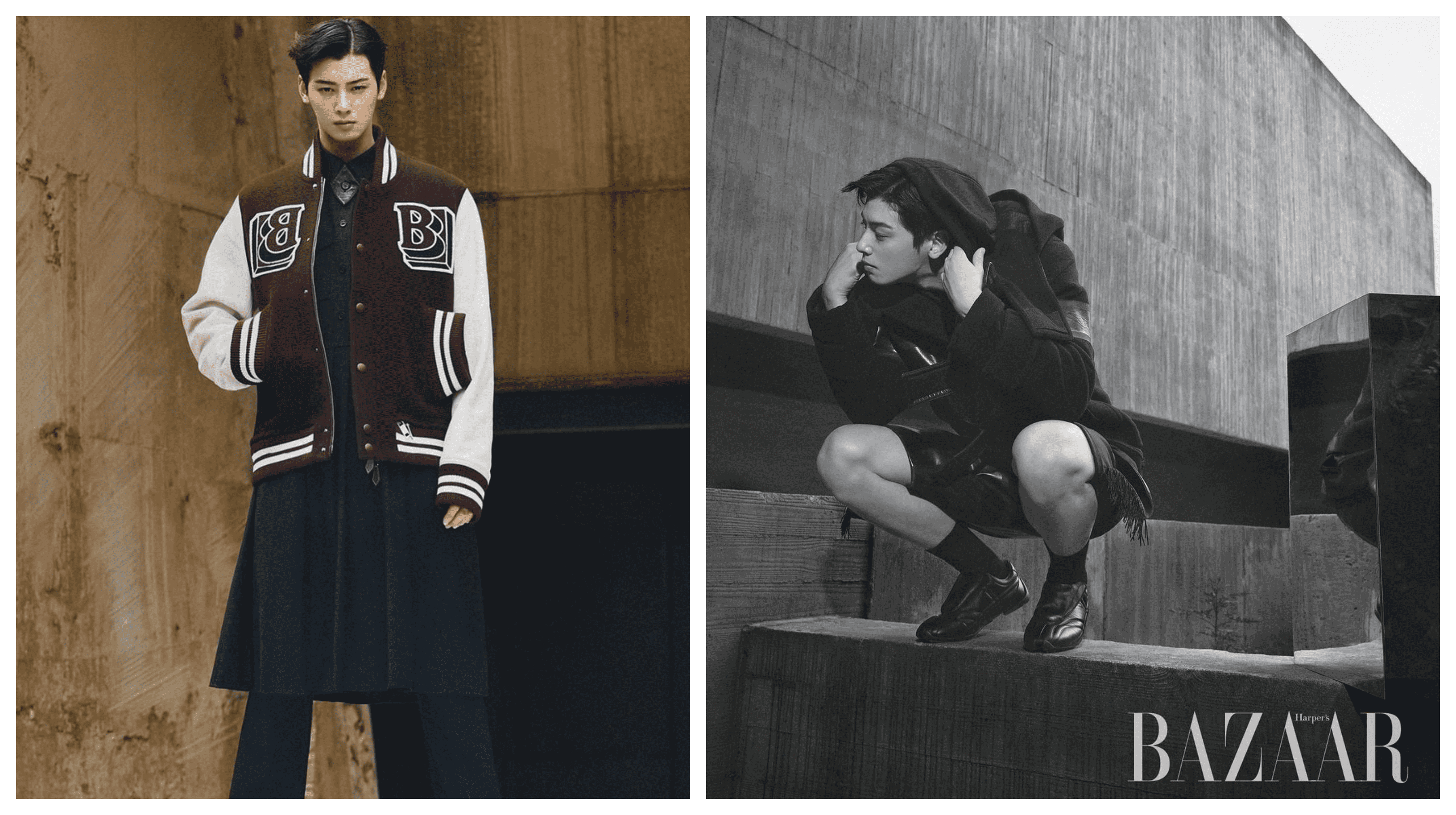 On September 24, Eunwoo posted a range of photographs from the October issue of the magazine that is available for fans to order. Eunwoo appears on the B version of the cover while South Korean actress and model Han Hyojoo appears on the A version. Both Eunwoo and Hyojoo, who are brand ambassadors for Burberry, appear in various outfits from the label in the pictorials.