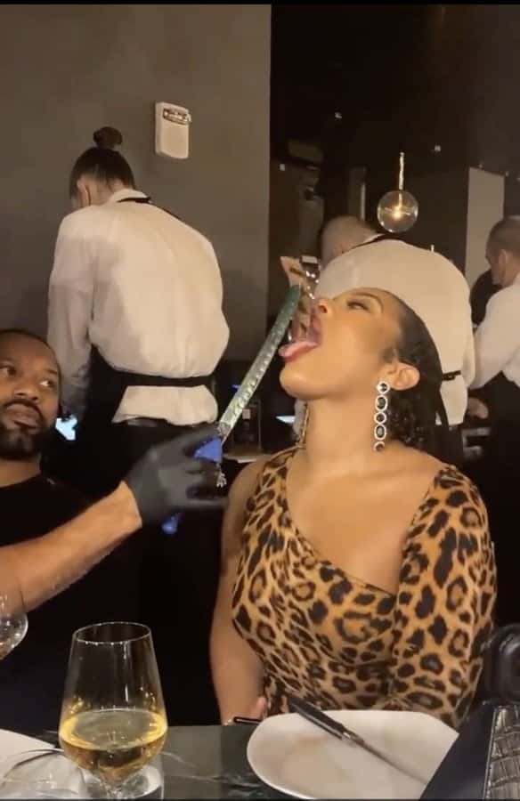 The next one stated, “Shorty disrespectful af for eating it like that. She ain’t have to do all that lol.” Another said, “Why anyone would be bothered by this is beyond me. He’s not sleeping with your girl...he’s not even touching her. Do you know how pricey Salt Baes restaurant is?! I’d be glad the price also includes my girl getting fed like a queen. Y’all are hella insecure.” One individual said, “I'd open my mouth like that for salt bae too LMAO.” Another asserted, “I would be personally horrified if it was happening to me but to my so? GO FOR IT SALT BAE, FEED THEM.” The next one concluded, “If salt bae fed me a strip of perfectly cooked beef, i'd die happy.”