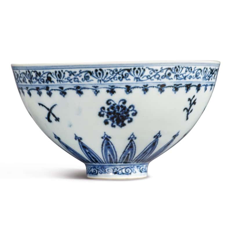 McAteer and Yin determined the bowl was made during the reign of the Yongle emperor, the third ruler of the Ming Dynasty and was made for the Yongle court. The Yongle court was known to have ushered in a new style to the porcelain kilns in the city of Jingdezhen and the bowl is a quintessential Yongle product, according to Sotheby's. The bowl was made in the shape of a lotus bud and is decorated with a medallion at the bottom and a quatrefoil motif surrounded by flowers. The outside includes four blossoms of lotus, peony, chrysanthemum and pomegranate flower. There are also intricate patterns at the top of both the outside and inside.