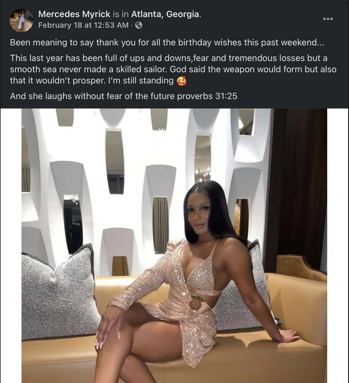 Seeing that the image is dated February 18, 2021, it's safe to say that her birthday was in mid-February. However, her location mentions Atlanta and not Cancun. More importantly, she doesn't look like she is pregnant. This has us asking the big question. Was Myrick pregnant at all? Or did she suffer a miscarriage? More importantly, is the rumor that Williams got Myrick's cousin pregnant and not her ever going to be addressed? There has been no confirmed news about the same yet.
