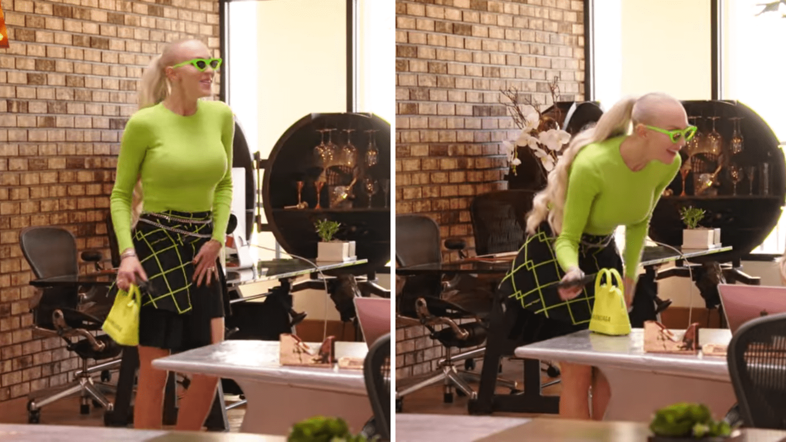While all the women of The Oppenheim Group are impeccably dressed, there can be only one ‘Quinn’. Christine Quinn's outfits are always served up with a hefty helping of attitude and OTT glamor. Her platinum blonde tresses and trademark smirk in place, you'll know that she dresses to kill. Walking about the polished floors of Hollywood mansions, her stilettos will inspire any woman in her right mind to want to slip on a pair of Louboutins and head to get a real estate license. Not to forget, she's sold homes in Louis Vuitton leggings, off-white blazers and even a Balenciaga sweater. This 'queen of mean' has her fashion game on point.