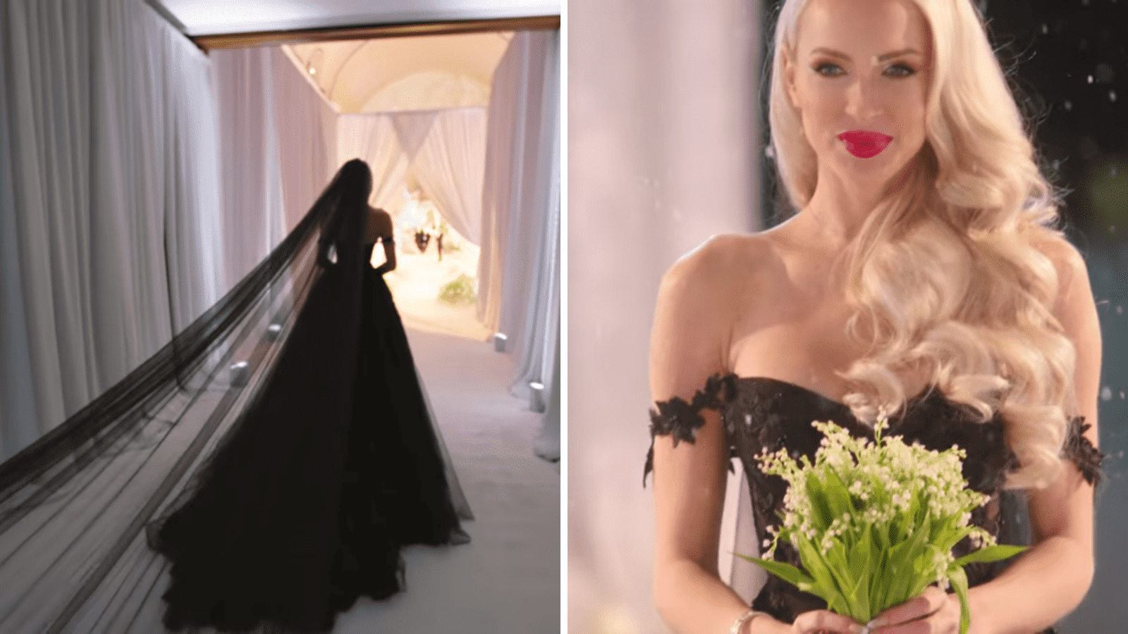 Of course, Christine was not going to wear a white dress to her wedding. The non-traditionalist opted for a black gown on her big day. Saying she's always thought of herself as a bit of a "Goth Barbie”, we can never talk about Christine’s style statements and not talk about her wedding dress. Christine's sparkly black Galia Lahav 'winter wonderland' wedding dress was probably the best thing people witnessed in 2020. The ballgown featured a sheer black bustier top with off-the-shoulder straps, shimmering details, and black roses embroidered from the top all the way down through the tulle bottom. Every element of the dress sparkled with detail. The supertight dress has a flattering mermaid shape with mesh cutouts down the legs.