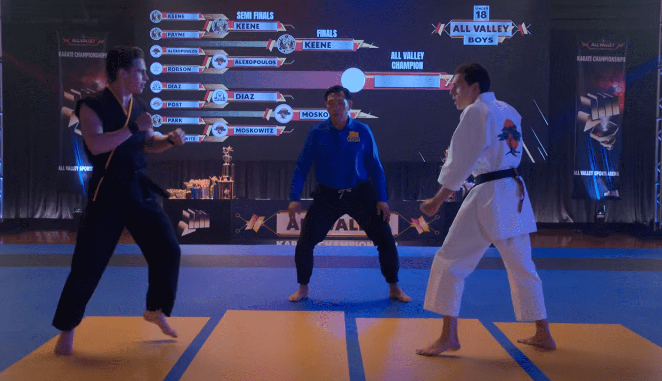 Robby and Eli face each other in the final. Initially, Robby is dominating and gets the points. Eli gets to his corner and asks LaRusso about what should he do to beat him. LaRusso realizes that it’s time for the offense now. So, he lets Eli fight as Johnny told him to. LaRusso tells Eli to take the defense to Robby. Eli becomes a different fight altogether and dominates Robby. He gets one point and now they have one-one point each.