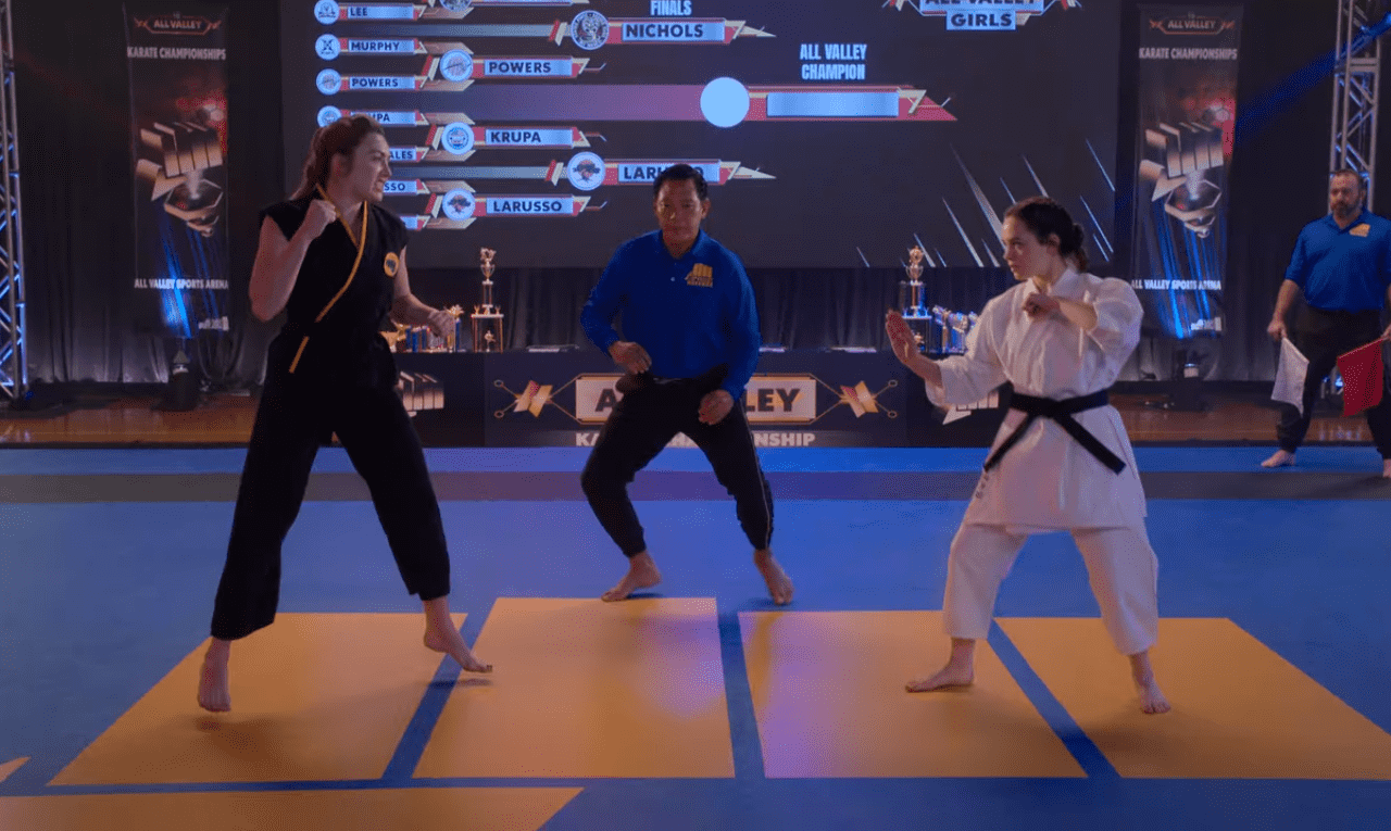 They start the match with a lot of history. Sam has evolved into a fighter and now her dad allows her to be attacking. Before their match, LaRusso goes up to Johnny and requests him to be on their side. He says yes and they are on the same side. Sam shows Tory how evolved she is and she takes the first point. The fight continues and they are neck-to-neck, not giving chances to one another. But Tory gets two points to her name and in the final moments, Sam also comes back to tie the game. In one of the moments, Tory’s elbow hits Sam’s right eye, making it difficult for her to see correctly.