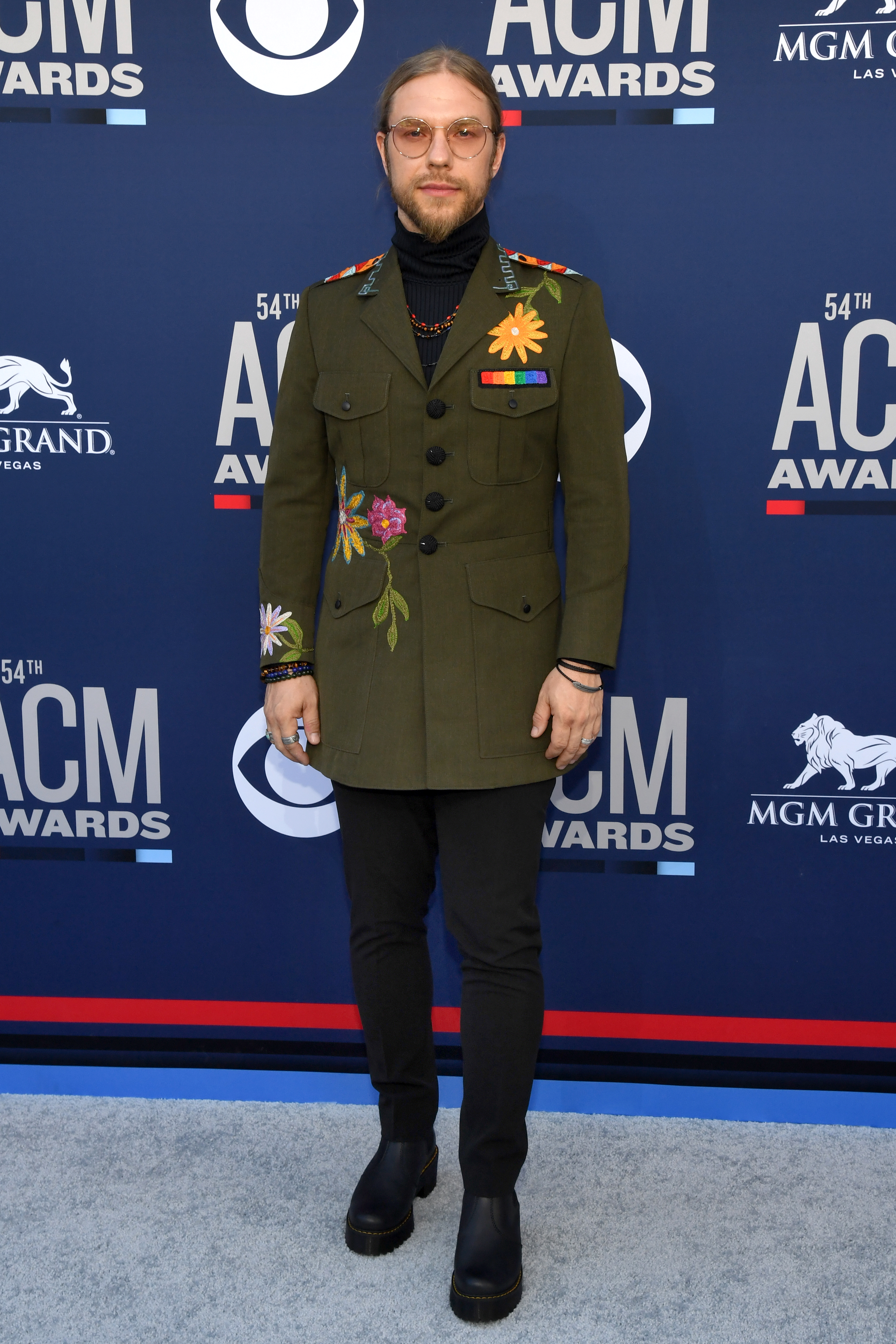 This color is tacky, period. Dustin's snakeskin boots are the only saving grace to this off-putting cowboy meets lawyer outfit. They do nothing for his gorgeous face and if anything it's hard to see him underneath all that shine.