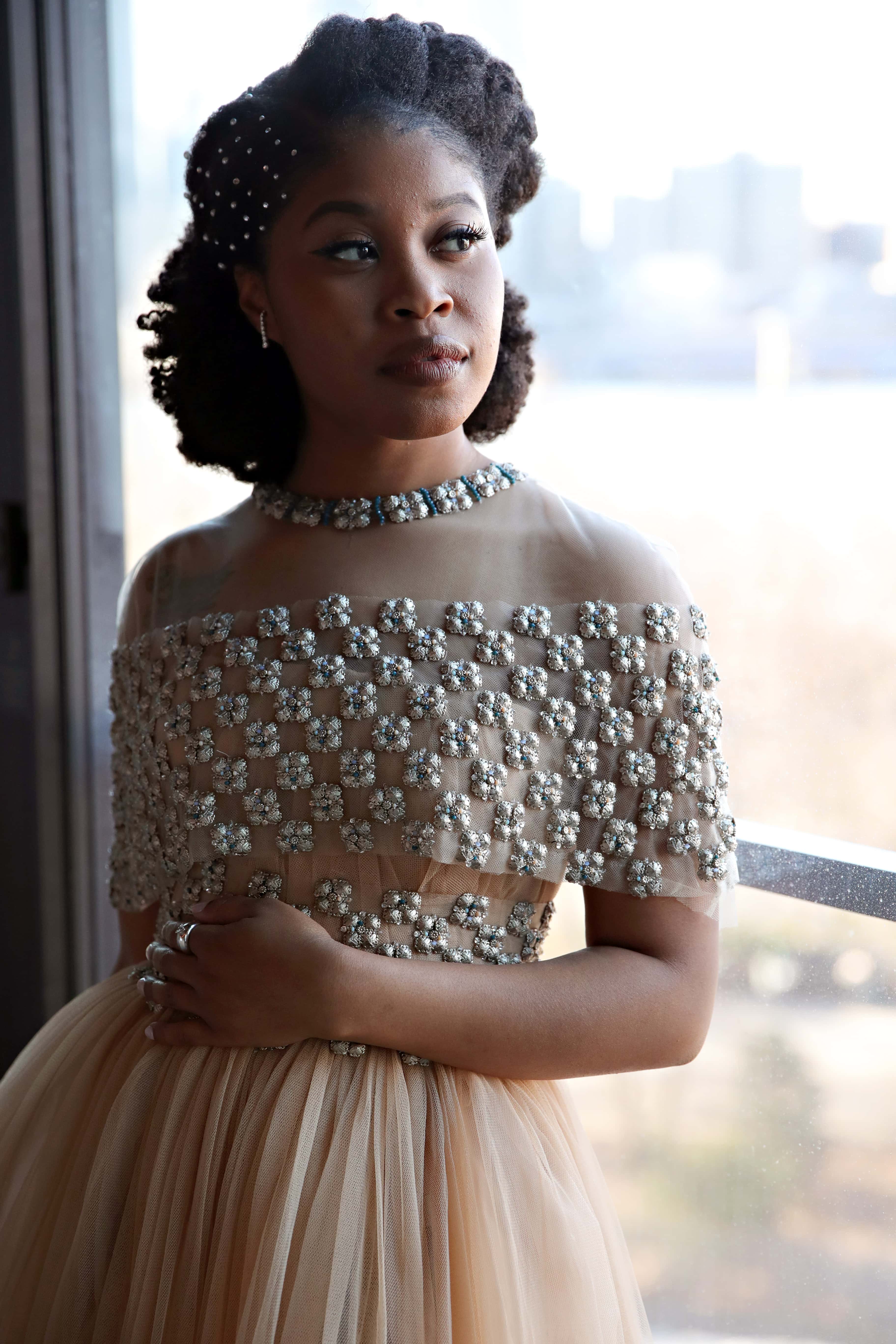 ‘Judas and Black Messiah’ actress Dominque Fishback looks absolutely stunning in Reem Acra's bejeweled number.
