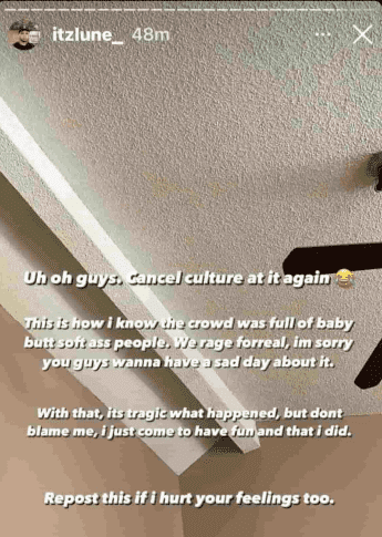 Following his antics, he took to his Instagram stories and made a post where he stressed his unrepentant attitude, referring to the crowd at the concert as “baby butt soft a** people.” “Uh oh guys. Cancel culture at it again,” Vargas wrote followed by a laughing emoji. “This is how I know the crowd was full of baby butt soft a** people. We rage forreal, I’m sorry You guys wanna have a sad day about it. With that, it’s tragic what happened, but don’t blame me, I just come to have fun and that I did, repost this if I hurt your feelings too.” In another post, he said, "I said what I said, f**k them people." In one of his Instagram stories, he shared his full name and the address, asking critics to take action against him if they dare. Screenshots of his posts have since gone viral on the internet.