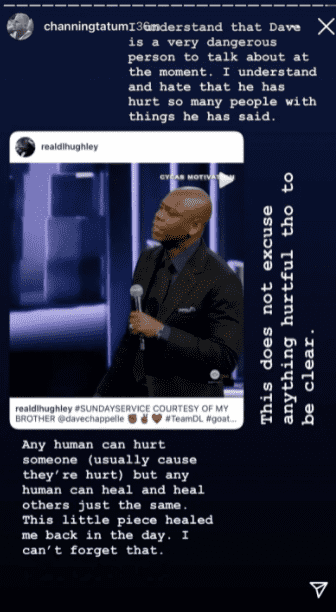 "You know what? Thank God! It was about time! The second the Dave Chapelle special dropped, my first IMMEDIATE thought was "I wonder what Channing Tatum will have to say about this?" Channing's silence until this point was deafening," a comment read. "Channing Tatum praises & scolds Dave Chappelle at the same time saying he has done great work but has hurt many people. This is the "everyone deserves a trophy" crowd who constantly complain about hurt feelings. Not everyone gets a trophy. Grow up & learn how to take a joke," another chimed in.