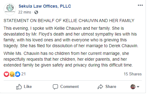 Soon after, she filed for the dissolution of her marriage to Derek. The statement continued, “While Ms Chauvin has no children from her current marriage, she respectfully requests that her children, her elder parents, and her extended family be given safety and privacy during this difficult time.” Her words drew much support and she was called compassionate and kind.