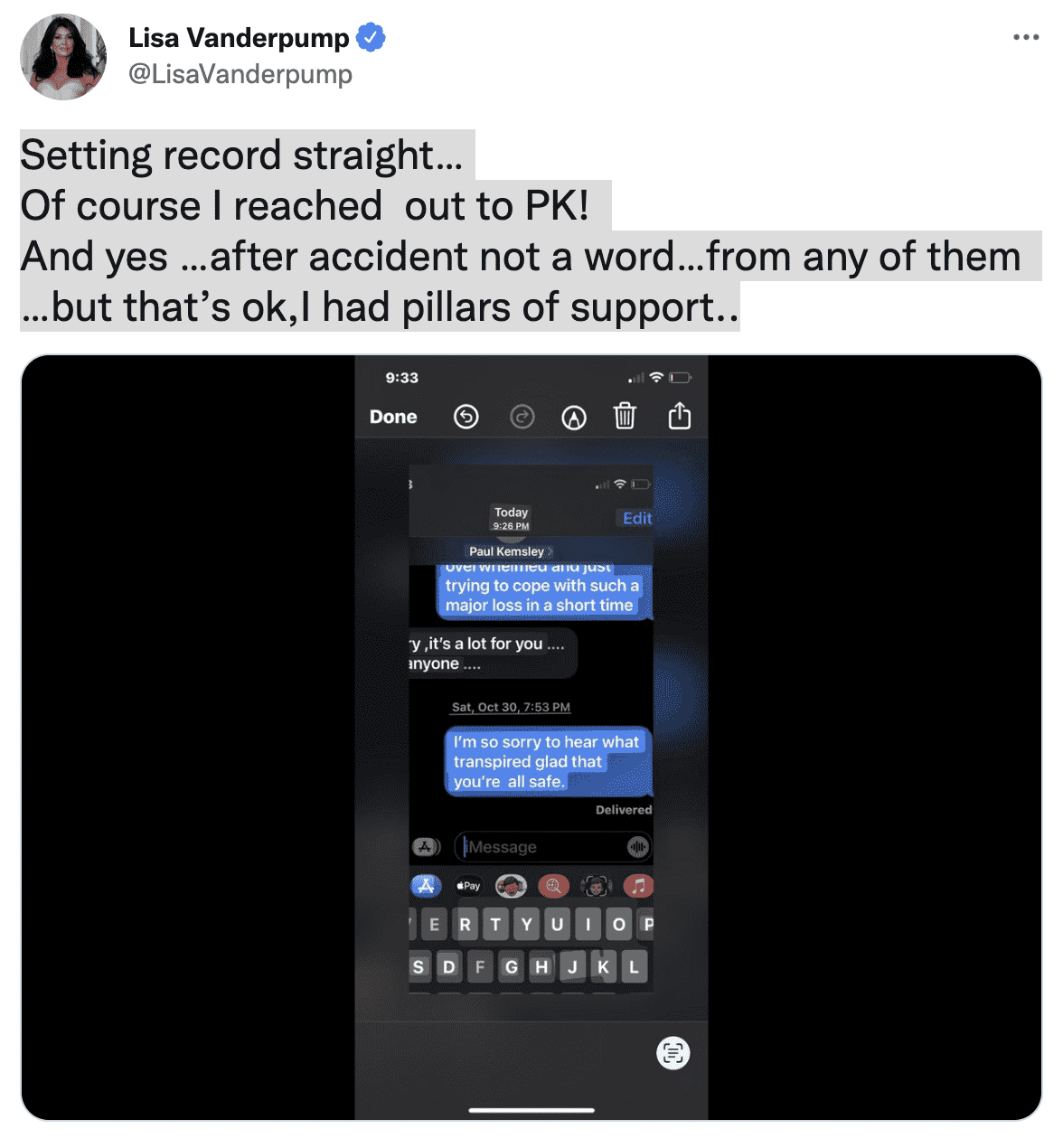 LVP's text reads, "I’m so sorry to hear what transpired glad that you’re all safe.” She captioned the screenshot with a snub at the Kemsleys for not reaching out to her following her horse-riding accident. "Setting record straight… Of course I reached out to PK! And yes …after accident not a word…from any of them …but that’s ok, I had pillars of support.." While LVP received a lot of love and support from her fans, sadly PK and Dorit continue to insist that they never heard a 'word' from LVP.