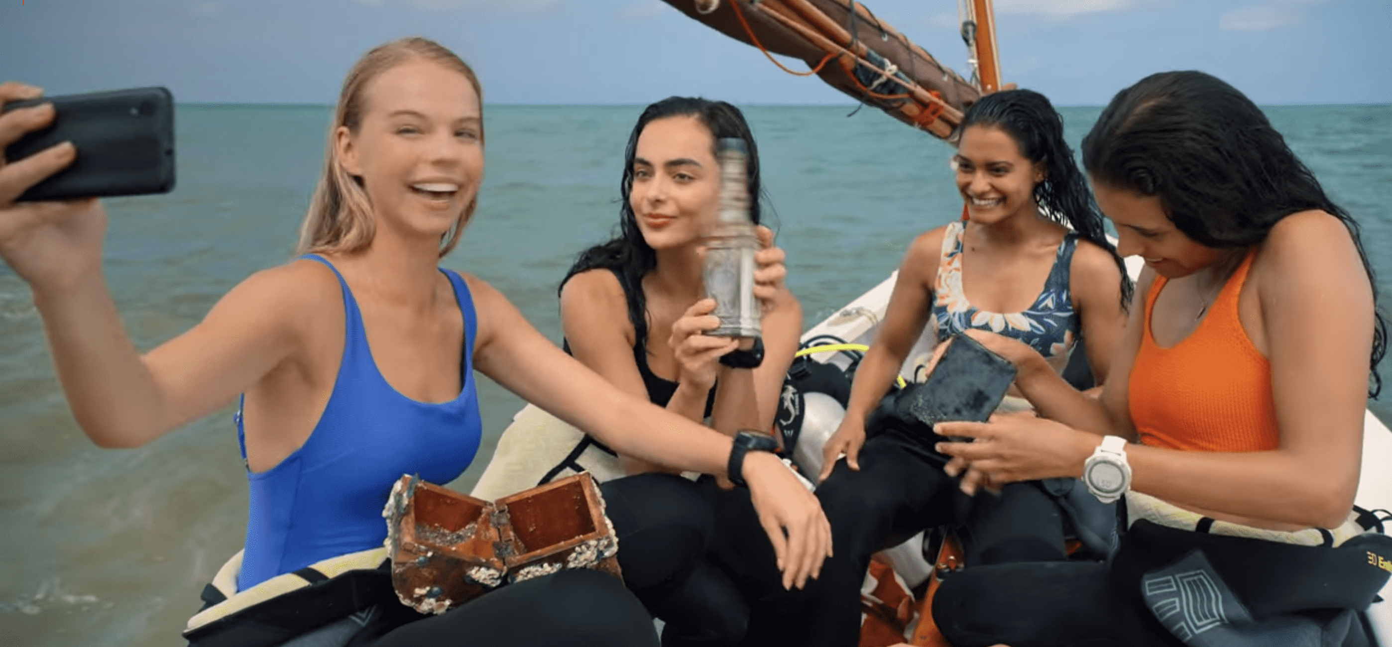 The plot is pretty straightforward. Cape Mercy has a group of passionate teens who also happen to be expert divers. They have their share of adventures testing what the sea has in store. The first episode sets the tone when one of the girls, Lauren (Georgia-May Davis), goes missing with her boat Indy on a stormy evening. It's almost as if the sea has swallowed her whole. The other teens, Maddie (Mia Madden), Stevie (Sana'a Shaik), Anna (Aubri Ibrag), and Izzie (Mercy Cornwall) make it their life's mission to find their missing pal.