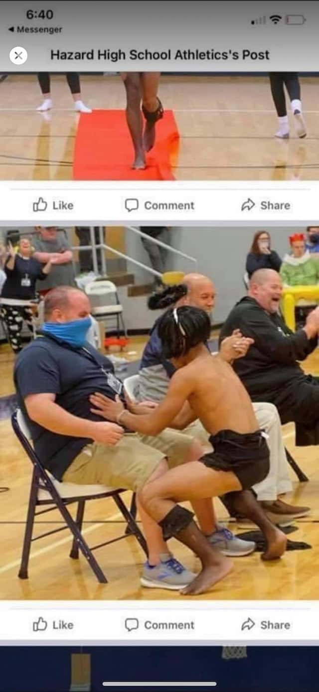 On October 26, the Hazard High School held a homecoming activity listed as "man pageant" on its Facebook page. Photos from the events show scantily-clad students giving the principal a lap dance, including both male and female students. Male students are seen dancing in their underwear, while female students were snapped in bikinis while Mobeini was caught with a large smile.