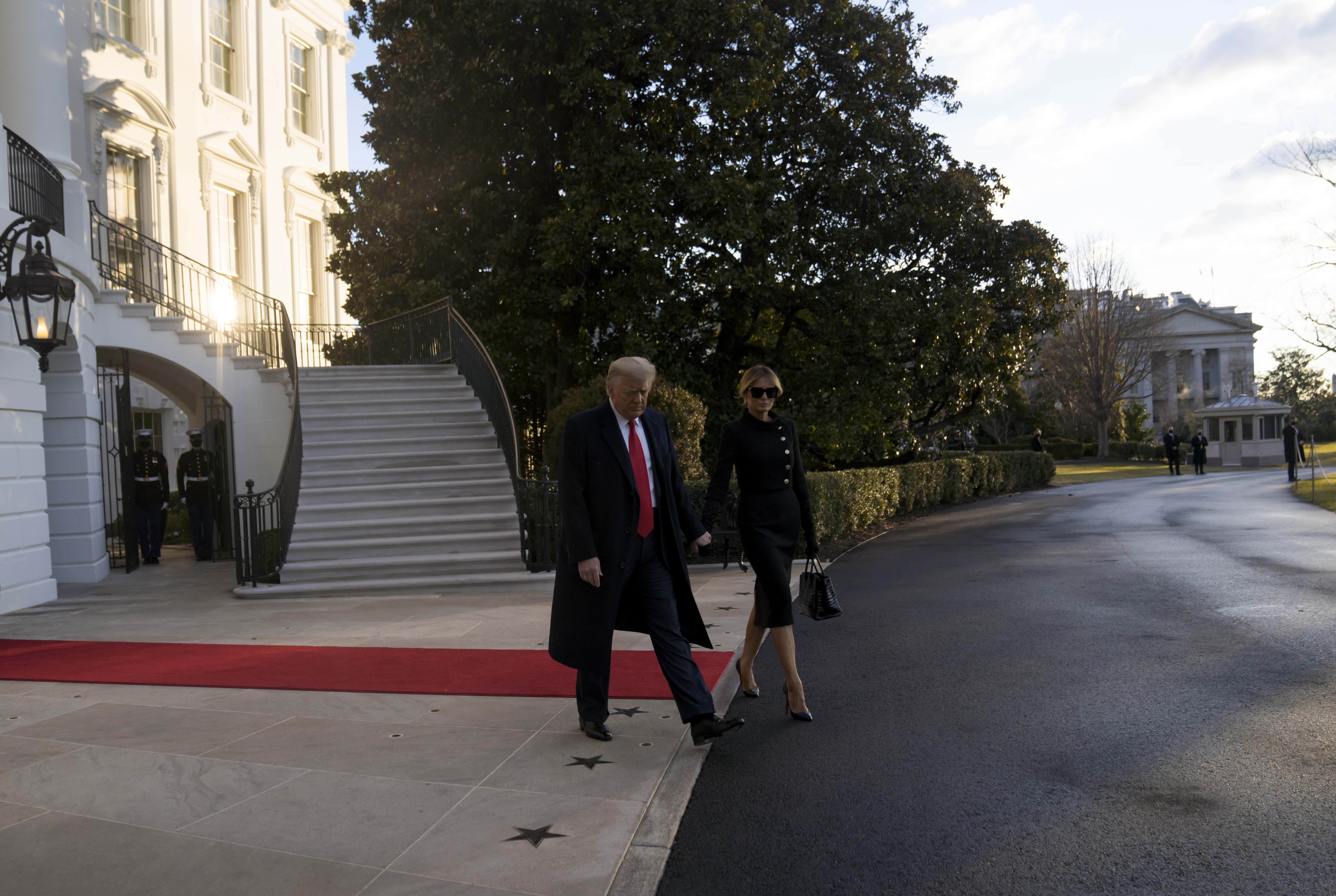 News channels captured Trump leaving the White House. Although he was supposed to be reaching the Joint Andrews base in Maryland at 8:10 am, the helicopter that was slated to take off with the former President was still parked on the south lawn at 8:11 am. Media outlets also observed Trump and Melania holding hands and walking out and of the White House. They waved at the media gathered and made their way to Marine One that would next take them to Palm Beach international.