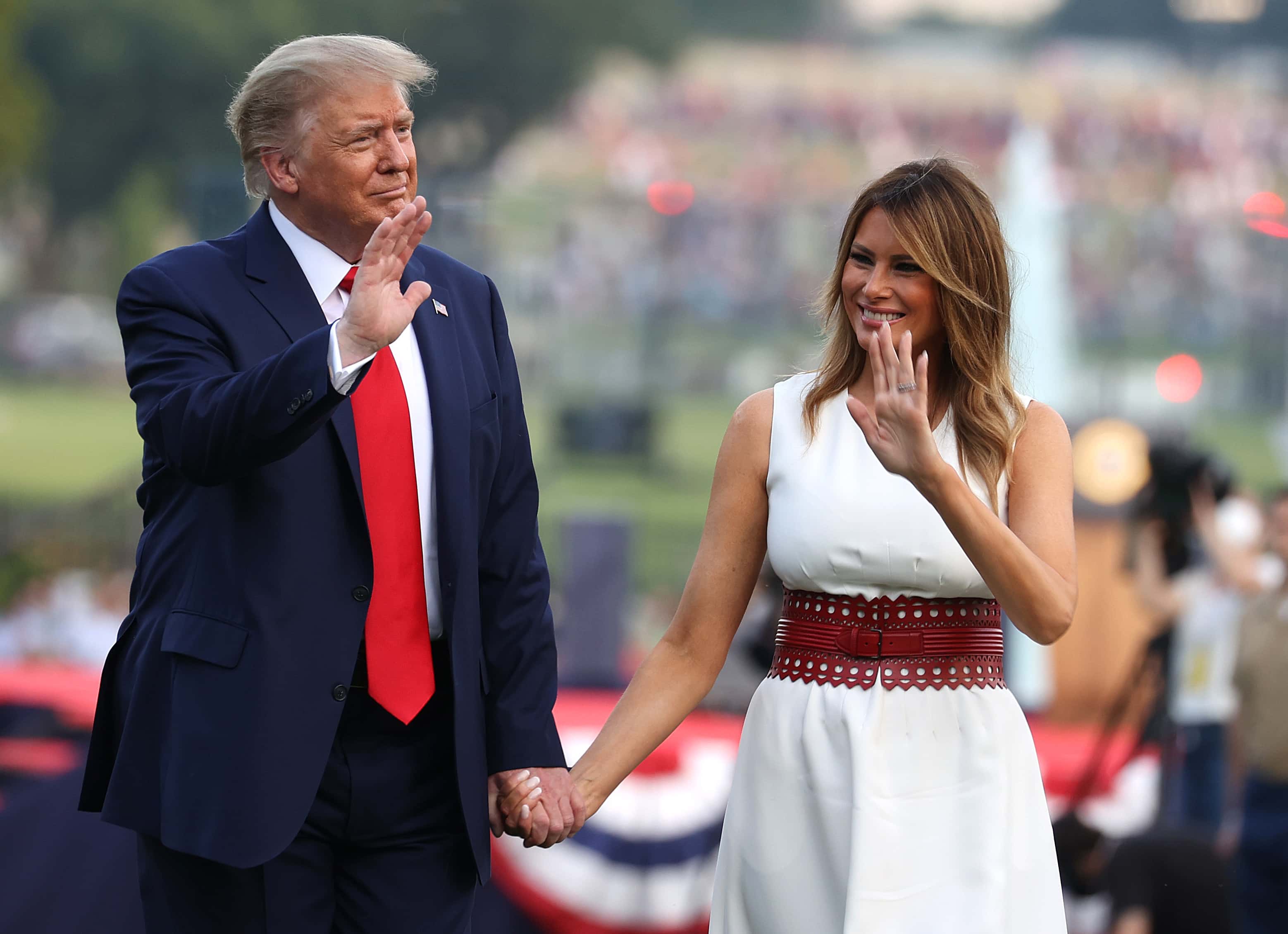 The first couple, before their speeches and firework displays, took to the outdoor stage at Mount Rushmore for the national anthem during which the president was spotted in a salute. Many social media users noted the blunder and slammed Trump for saluting during the anthem with political journalist Andrew Feinberg tweeting: "Can someone explain to @realDonaldTrump that as a civilian, non-veteran, he should have his hand over his heart during the national anthem?”
