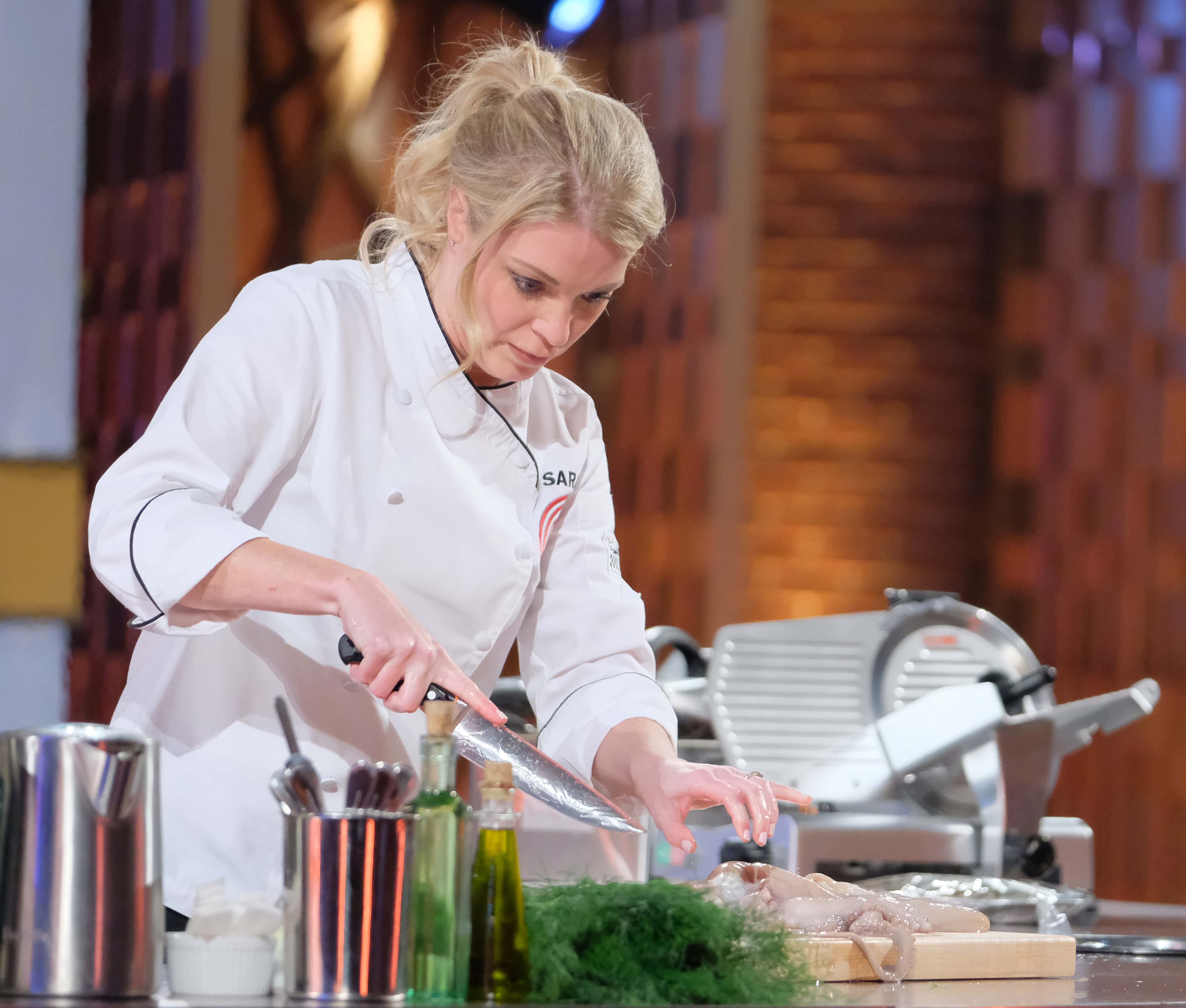 The judges threw in a twist to make things more interesting and revealed that one of the contestants would be eliminated immediately after the entree. Dorian, Nick, and Sarah proceed to cook their main entree. Dorian cooked applewood smoked short rib with potato and horseradish gratin and plated her ribs with a steam glass effect. The judges loved the dish but felt that the presentation fell short. Sarah made herb-crusted lamb. While her lamb was cooked perfectly, her vegetables let her down. Nick presented the judges with his sea bass dish and presents it in an open-book. The judges absolutely loved his presentation, but unfortunately Aaron got served an undercooked dish, which led to Nick's elimination.