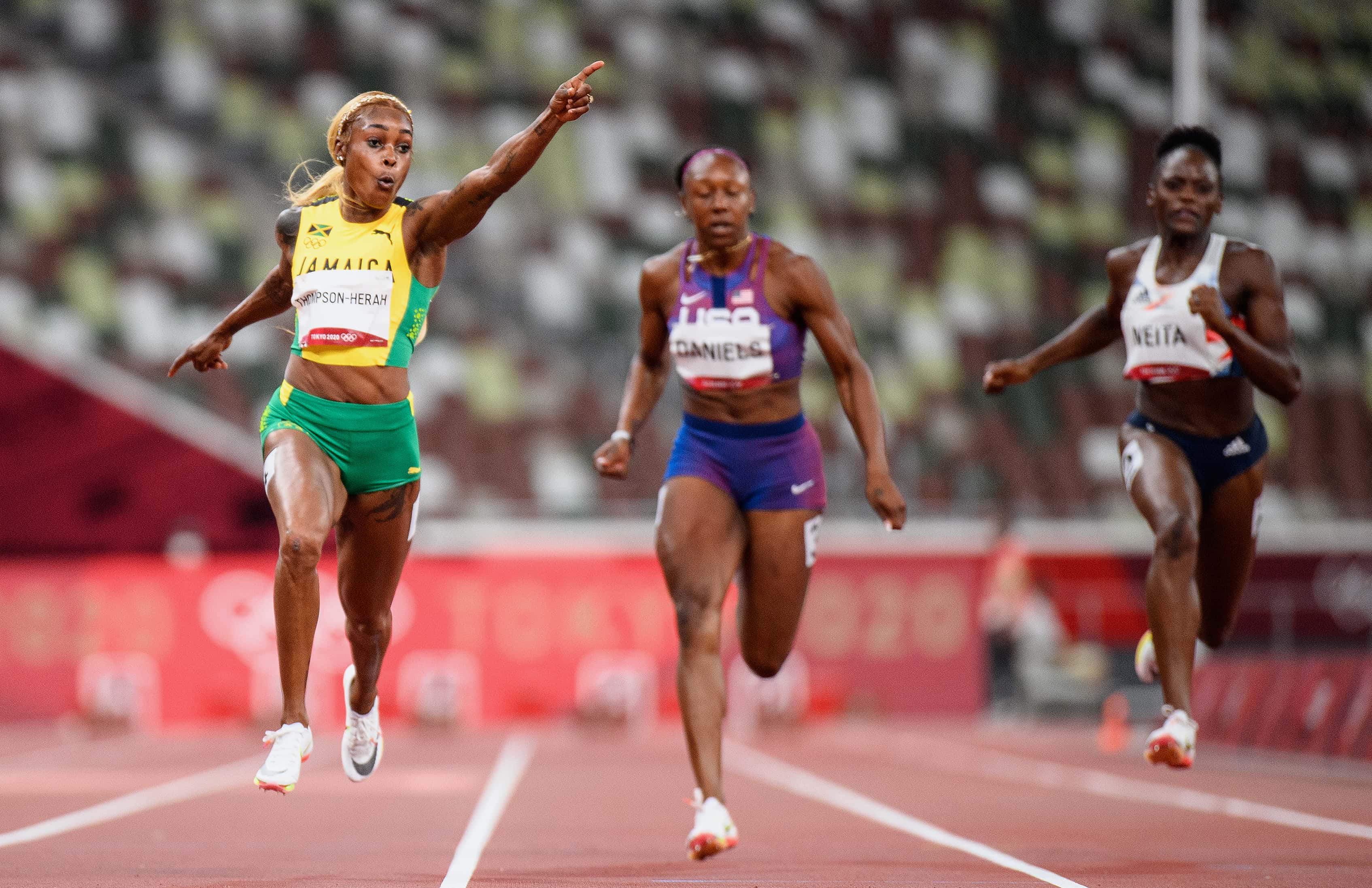 Thompson-Herah also beat her top rival, Shelly-Ann Fraser-Pryce, by 0.13 seconds. Meanwhile, Shericka Jackson won bronze in 10.76 seconds. It's worth noting that no Olympic sprinter had broken the 10.7 since FloJo. As Thompson-Herah approached the finish, she said she wasn't sure if she would do it. But "I knew that I won," she said after the win. "The pointing, I don't know what it means. To show that I was clear," she added.