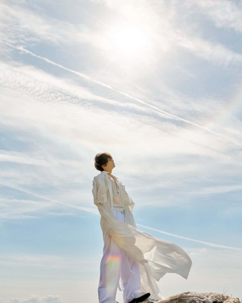 Eunhyuk has released several concept photos to hint at the type of song and music video that ‘be’ will be. He is first seen in a flowing red suit as he strolls by the countryside during a sunset. He also dons white and warm pastel chic outfits for a windswept look.