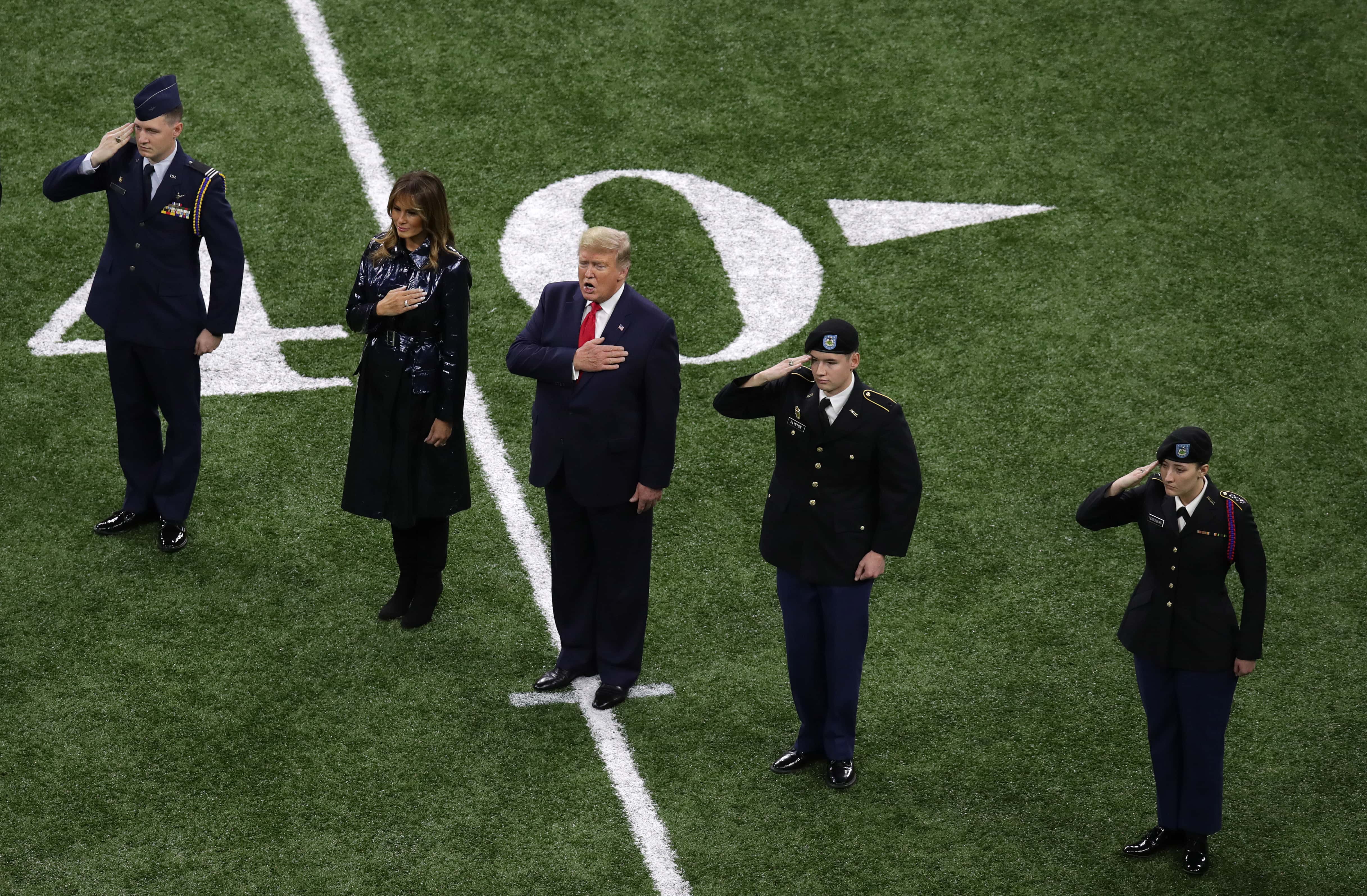 The game was broadcast on ESPN and the championship will make it POTUS' third college football game this season. It is also his second time watching LSU.