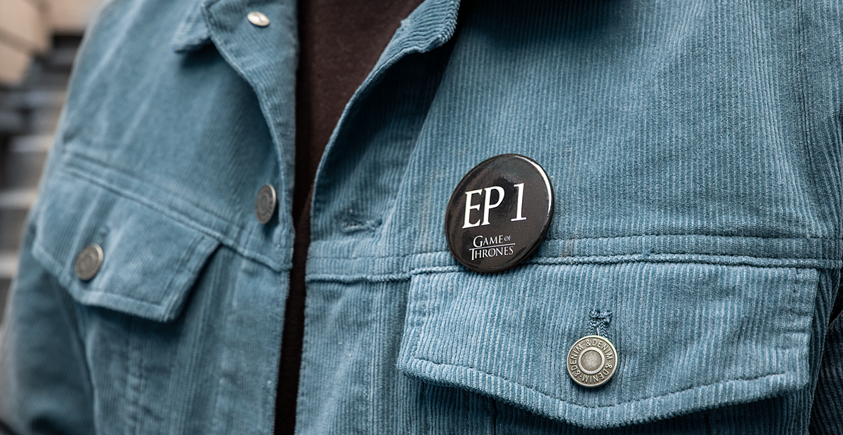 "Fans can get the pins for free in Telia stores, or online, and are encouraged to wear them in order to let friends, coworkers, and classmates know what episode they have seen so everyone knows what they can say, or can’t say, about the final season."