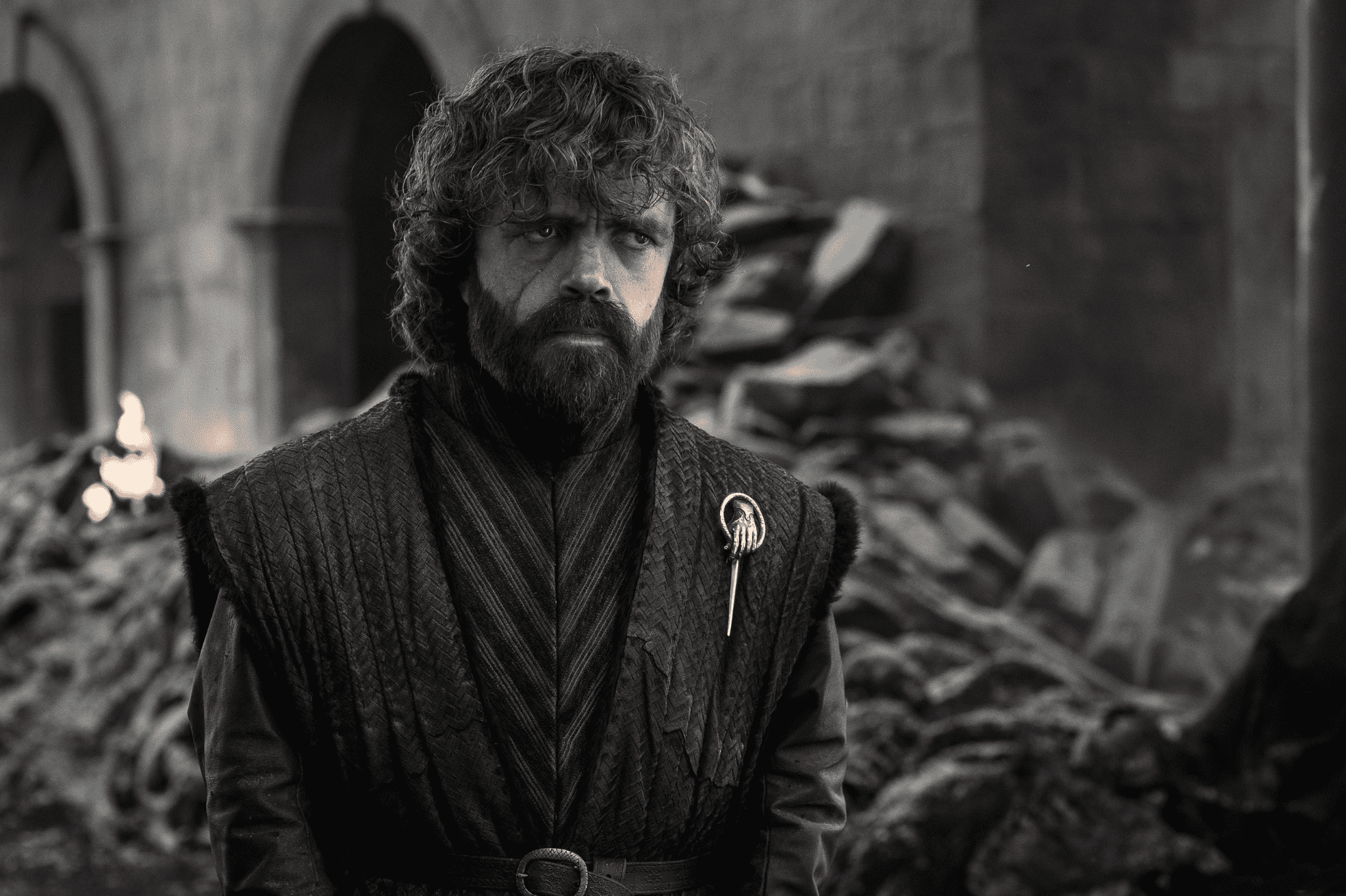Tyrion Lannister looks certainly upset at the consequences of trusting his queen. Standing amidst the wreckage, he looks extremely disappointed and worried but wears his Hand of the Queen badge. The reason he looks upset is apparent. He carried the same look on his face from when he saw Daenerys going all mad unleashing Dracarys (dragonfire). Tyrion knows he made a terrible mistake by not believing Lord Varys, his trusted friend, who only wanted the right ruler to rule.