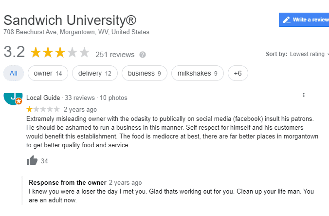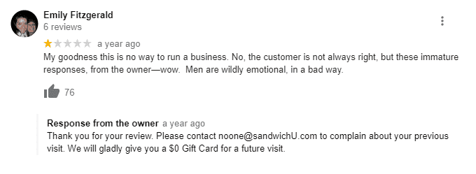 "Just your daily reminder to never support, endorse, or buy from this terrible business, Sandwich U, and its owner, George Tanios," tweeted one user in May 2019. An attached screenshot shows how he rudely responded to the workers.