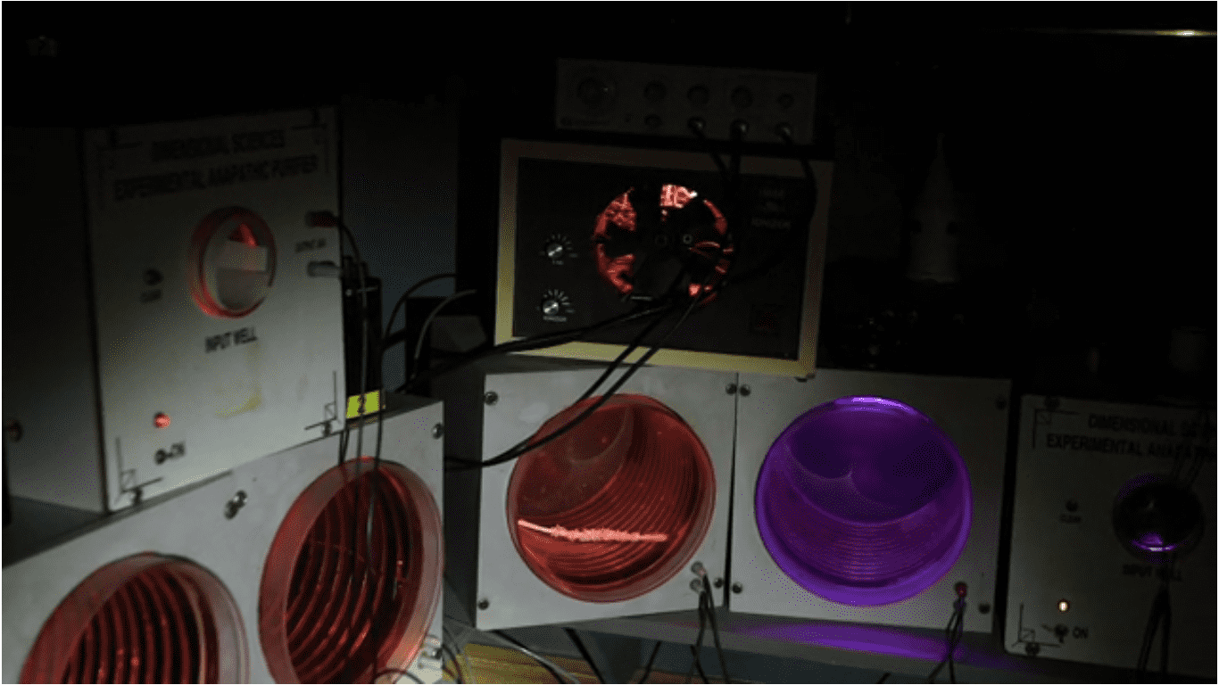 For their investigation, Tolley has been working with Bill Chappell, an engineer for over a year to figure out a way to reactivate the equipment using the woman's original handwritten spell cards. Bagans felt a presence in the room whilst setting up the experiment and used his digital recorder hoping to find something, and heard infrasound similar to a growl. Tolley told the crew that Chappell believes the woman had been using the equipment to produce sound and frequency that would manifest results like tapping into other dimensions. He and Chappell coordinated over a video conference to conduct the experiment.