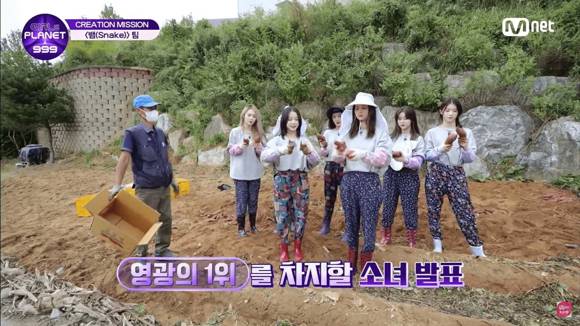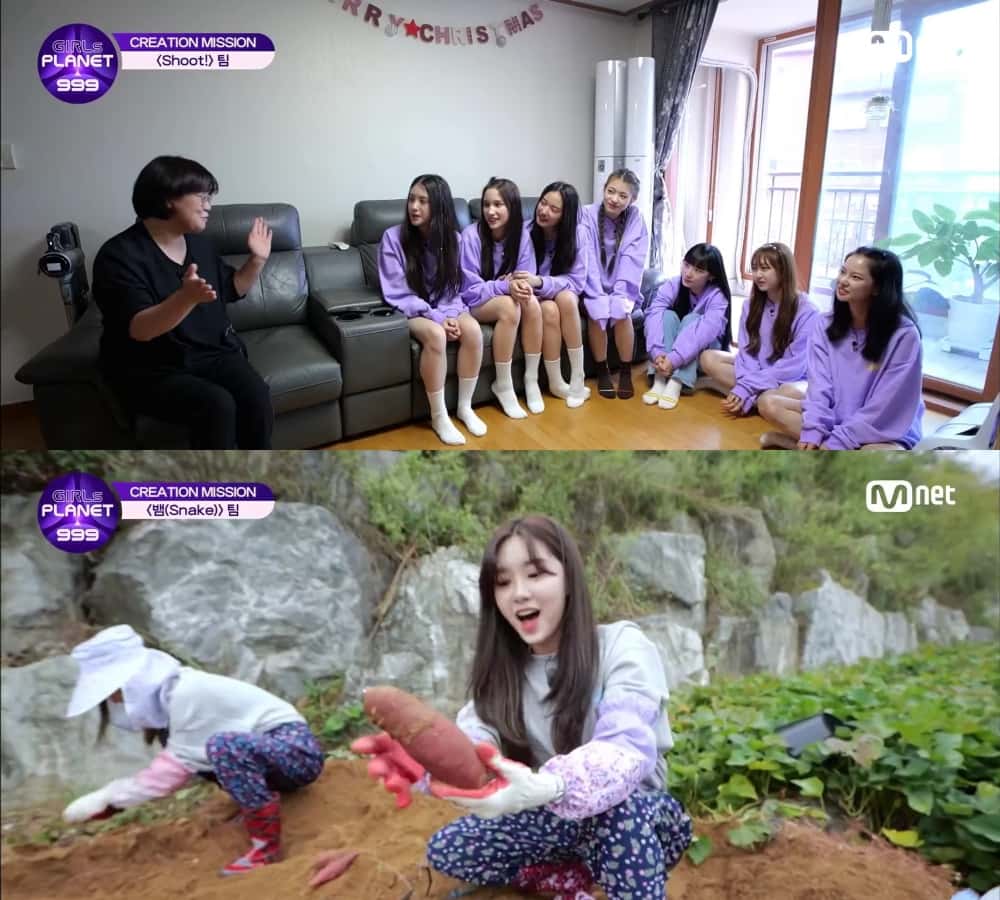 Team Snake was taken to a farm. Their first mission was to pick sweet potatoes with Wenzhe winning. For the next mission, they had to pick chilis. To keep things fun, Wenzhe got the girls to show off their charms by MCing and singing while completing their tasks. Dayeon was also surprised as Team Shoot FaceTimed from her home with her mom. Team Snake then performed for the people at the farm as they sang ‘Snake’ and a trot song. Cai Bing then moved the girls to tears as she thanked Dayeon for leading the team and taking care of the older Chinese girls.