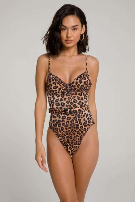 Bringing back that one shoulder hotness in a classic silhouette one-piece, that gives you the coverage and support that you want. Available in the iconic leopard print design, the one-piece is comfy and chic with sexy detailing. It comes with a cinch tie around the waist and top and is equipped with a built-in shelf bra and removable pads.