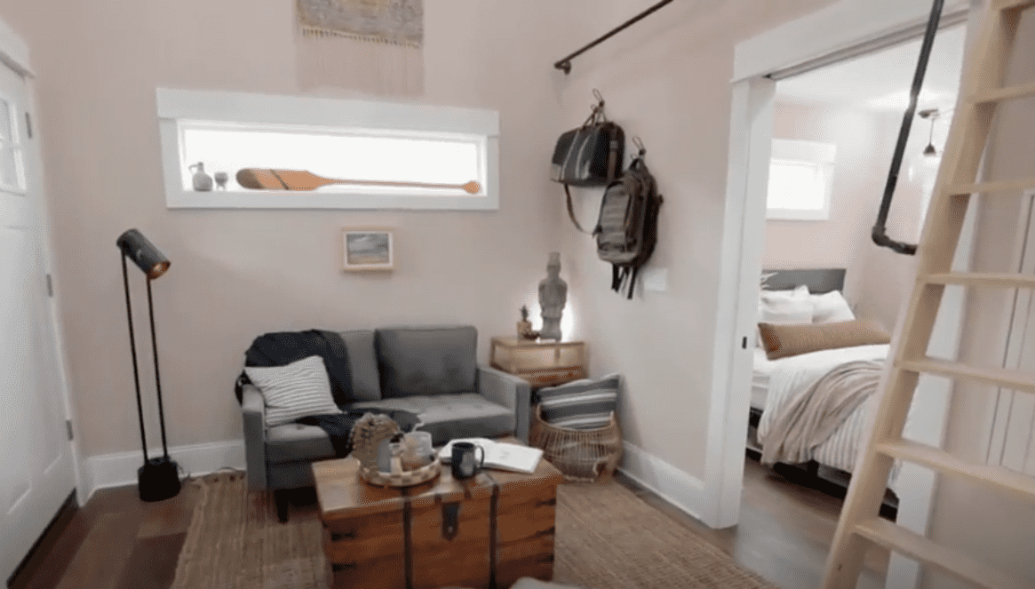 To get a feel of a small space for a home before they can set out to create their own version of it, Mina and Karen visit a tiny home community and meet with the visionary behind it. They learn about the lifestyle of living in a tiny home, the usage of very light walls, visual interest on the ceiling that doesn't feel heavy and optimal utilization of the space. All of the inferences are exactly what they need for the small but convenient home they want to make for Tad. The old garage in question is located in the booming Bates-Hendricks neighborhood in downtown Indiana, on a property that is already undergoing renovations. The locale is a cool, hip place to live and would be perfect for Tad.
