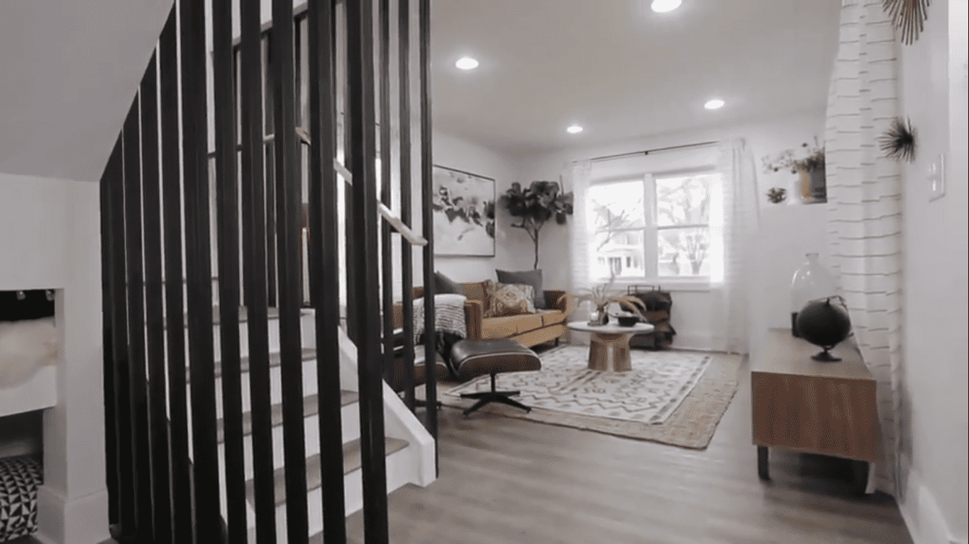 Interior-wise, the living room doesn't change, while the staircase remains the same, Mina plans to add a fireplace in the living room acting on Curtis' surprise for Mel, who has always wanted one. The kitchen, dining room, and bathroom downstairs will stay the same as well. Upstairs, the two other bedrooms will stay as is, while the master bedroom gets a complete makeover with the addition of a closet and ensuite. The decision on the interior design is a bit tricky, says Mina, as its not their house, and while Curtis and Mel have given the team their input, the final decision is up to Two Chicks and Hammer Inc.